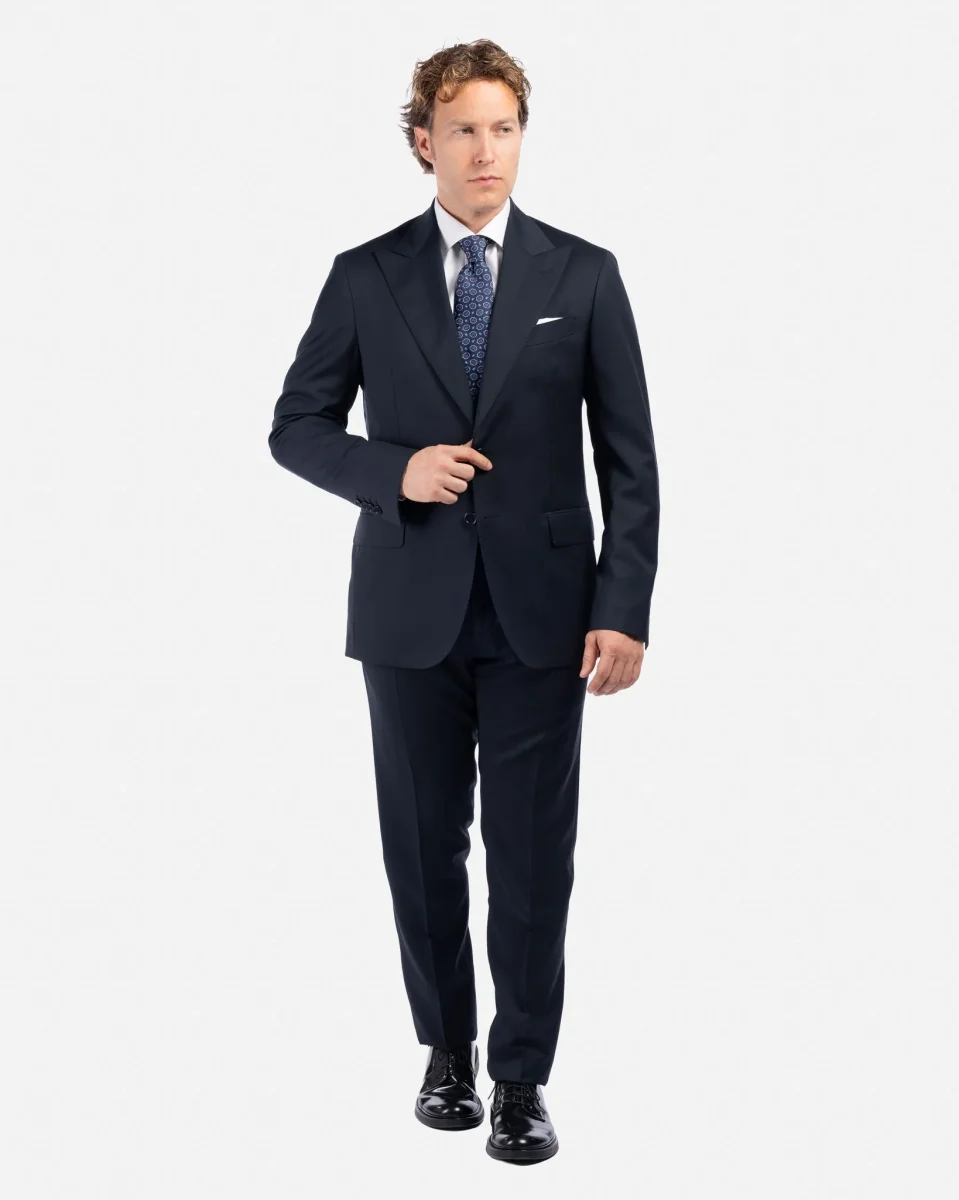 Abito Blu con Rever a Lancia in Lana Super 130’s Cerruti