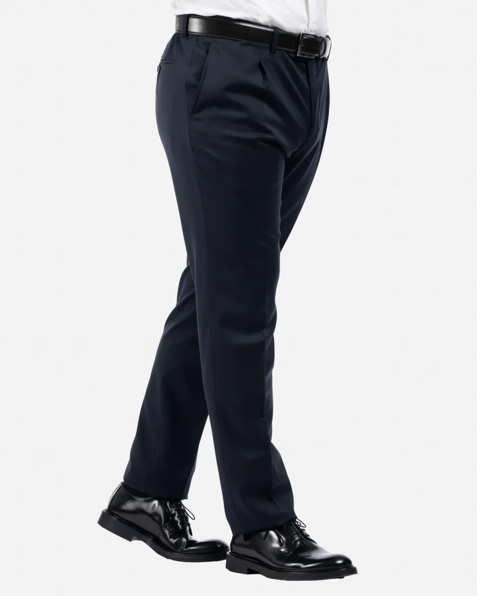 – Pantaloni con pinces frontali e chiusura con doppio bottone