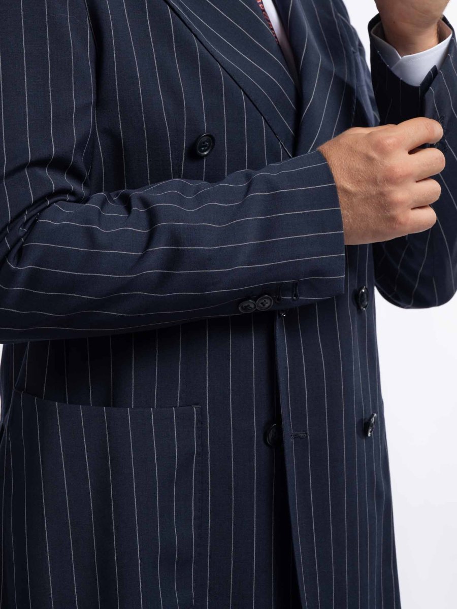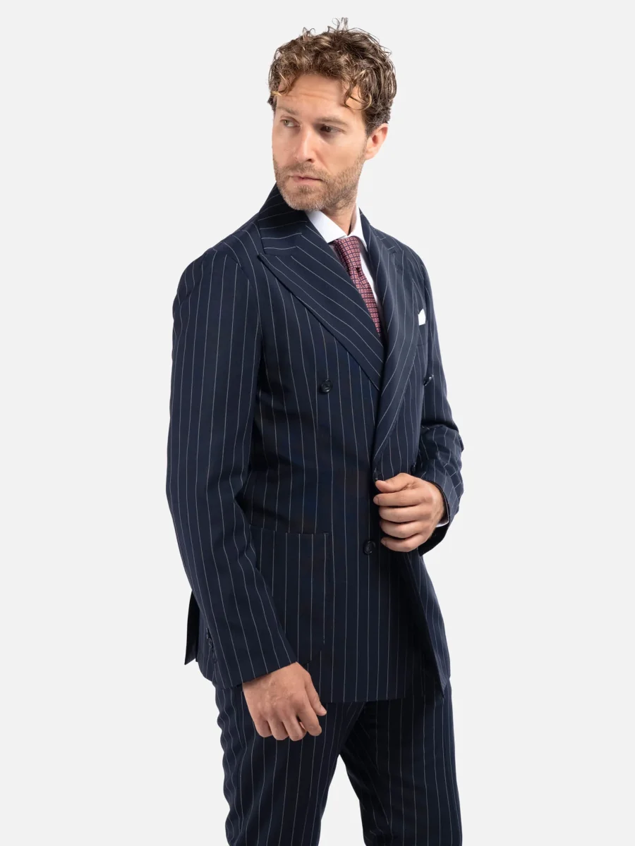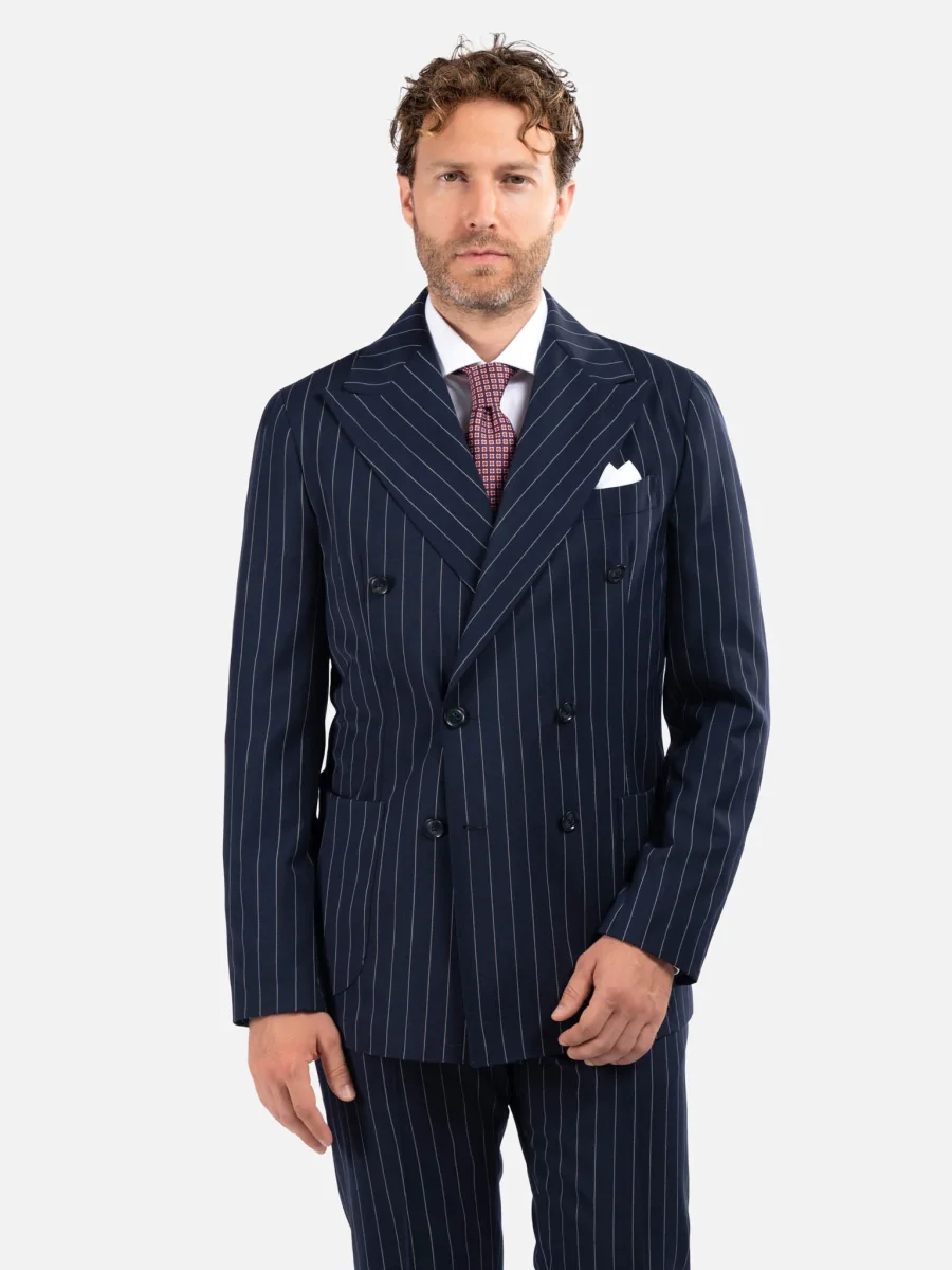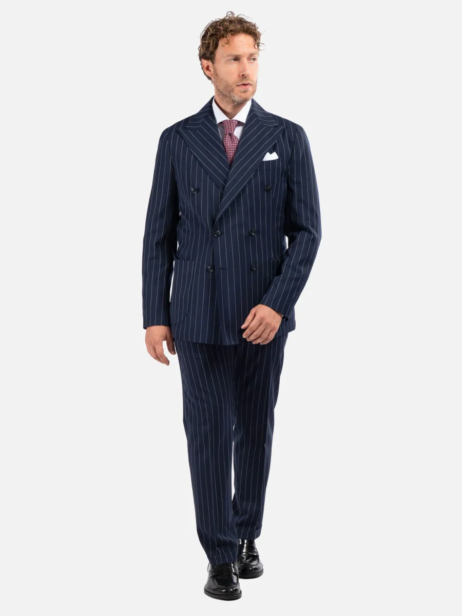 Eleganza sartoriale e comfort moderno si incontrano in questo abito doppiopetto realizzato in Italia in pura lana. Perfetto per la stagione calda e ideale tanto in contesti formali quanto in occasioni business casual. Il blazer doppiopetto è caratterizzato da revers a lancia, spalla destrutturata, tasche a toppa e costruzione morbida che accompagna i movimenti senza costrizioni. Il pantalone, con piega frontale e fondo con risvolto, completa il look con una silhouette asciutta e contemporanea. Un completo pensato per chi cerca stile, respiro sartoriale e praticità. Made in Italy.