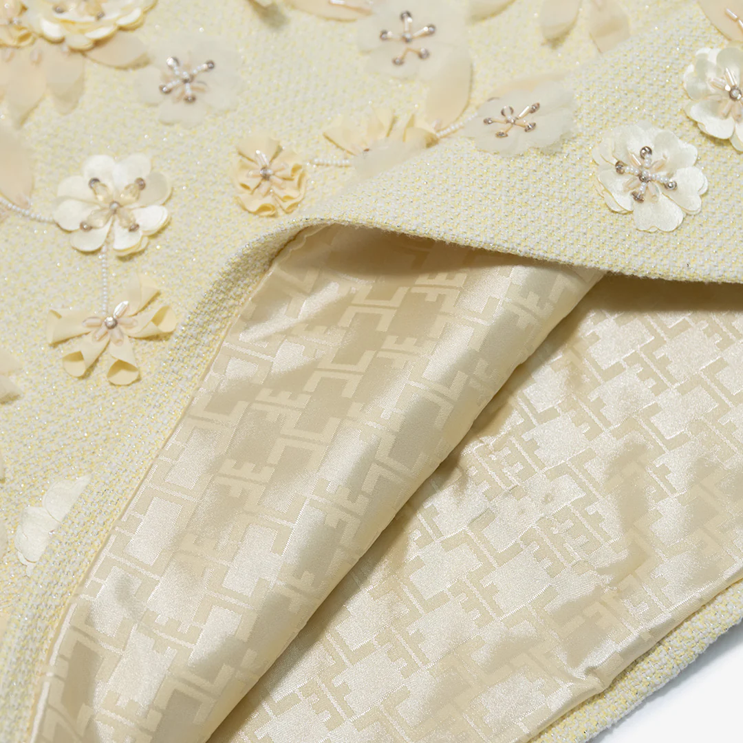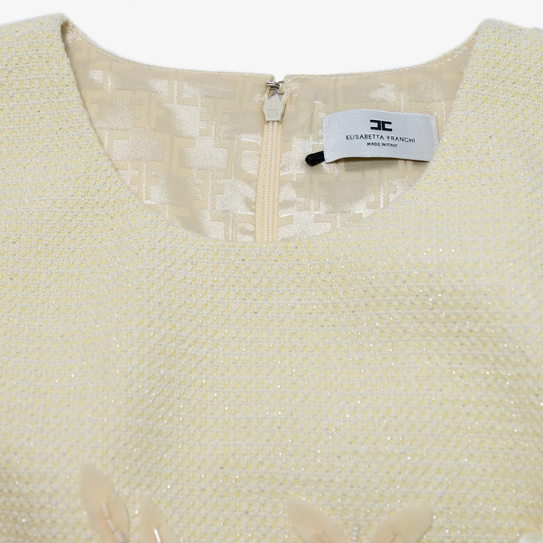 Abito ELISABETTA FRANCHI donna Modello corto Chiusura posteriore con cerniera nascosta nella cucitura e gancio Fodera interna logata tono su tono Applicazione fiori sul davanti Composizione: 71% Cotone 27% Poliestere 1% Poliammide 1% Elastano
