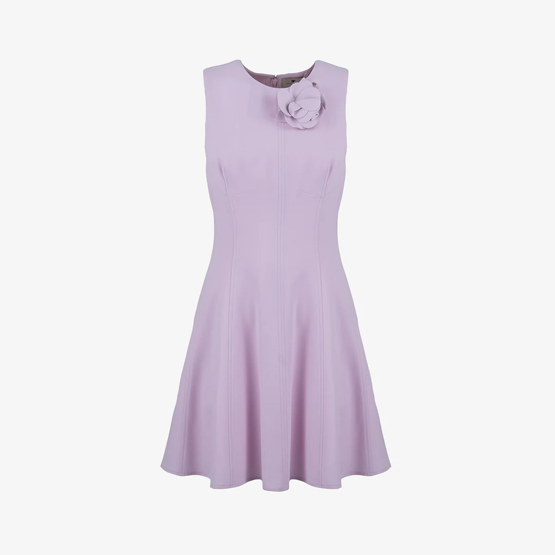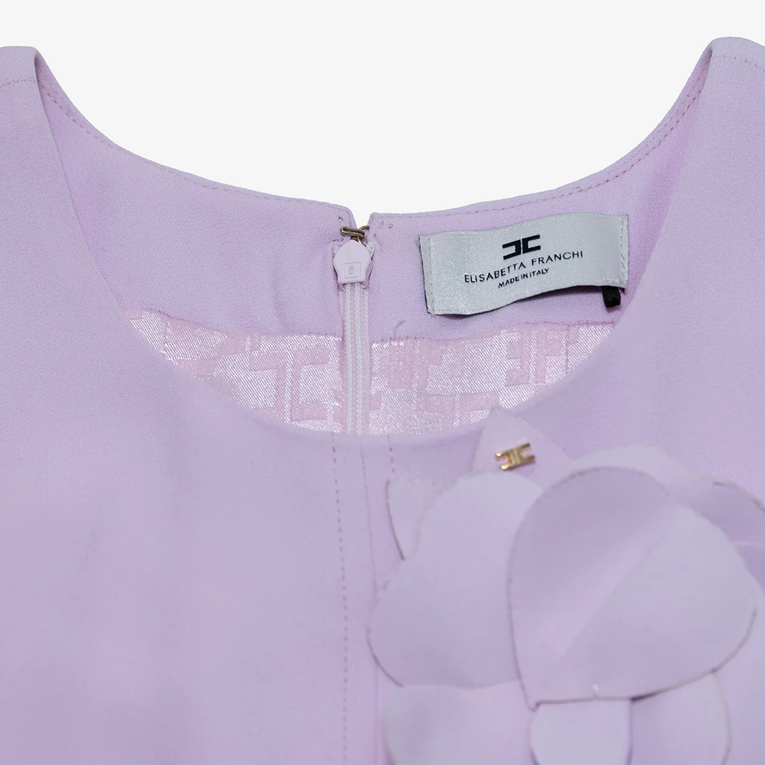 Abito ELISABETTA FRANCHI donna Modello corto Collo rotondo Applicazione del fiore sul davanti Chiusura posteriore con cerniera nascosta nella cucitura Fodera interna logata tono su tono. Composizione: 50% Viscosa 47% Acetato 3% Elastano