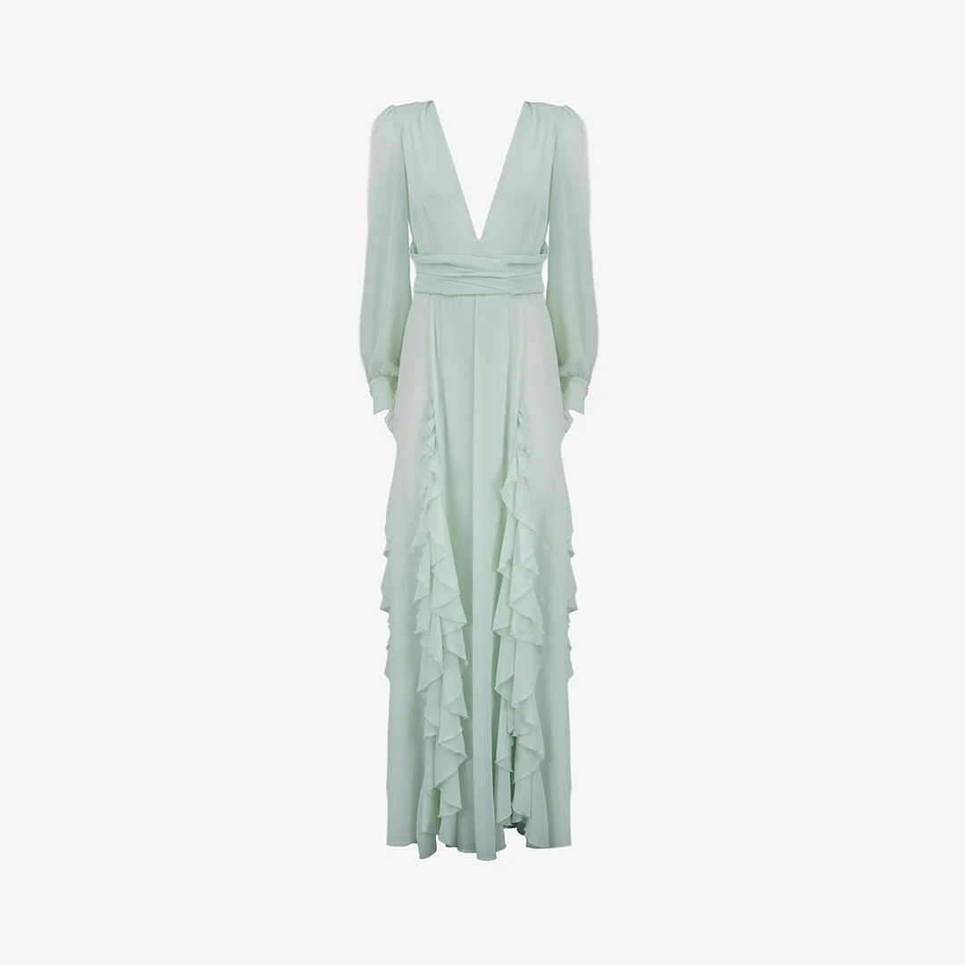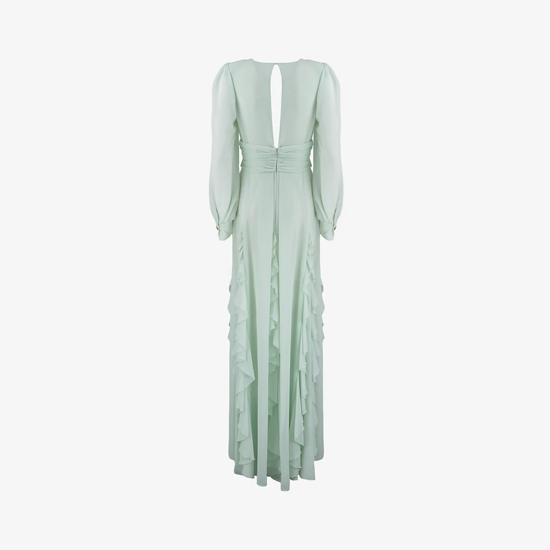 Abito ELISABETTA FRANCHI – RED CARPET donna Modello lungo Maniche lunghe Spacco sul davanti Chiusura posteriore con cerniera nascosta nella cucitura. Composizione: 100% Poliestere