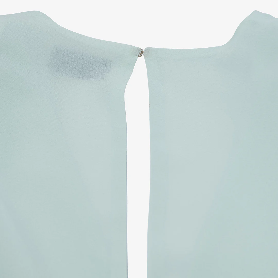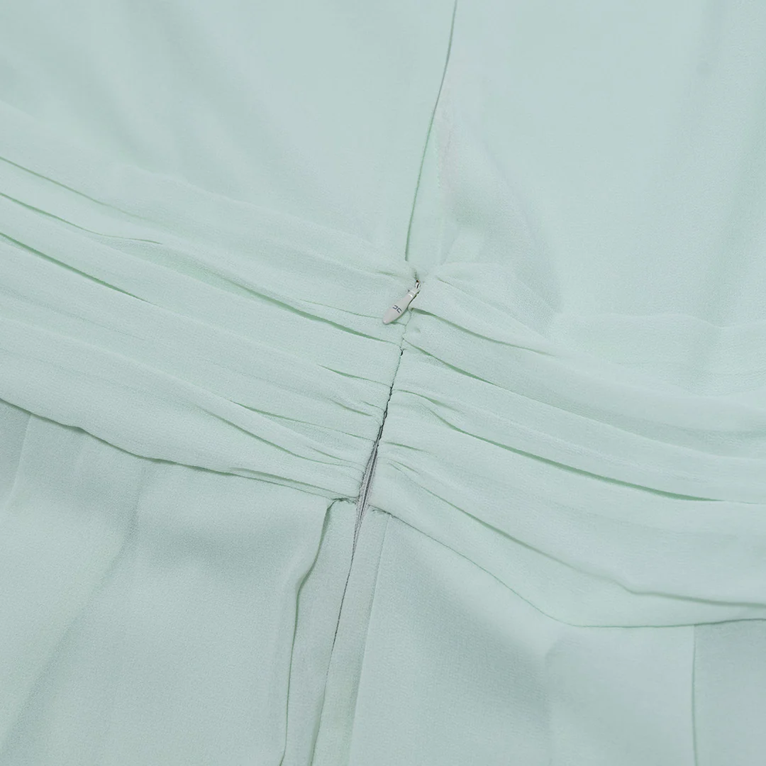 Chiusura posteriore con cerniera nascosta nella cucitura.