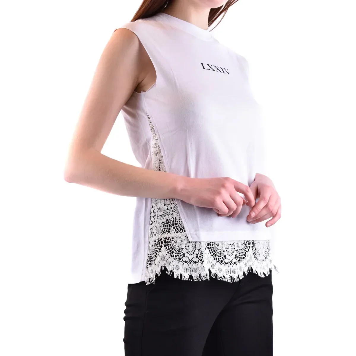Alexander McQueen Canotta Donna Bianco Smanicato Scollo Tondo Cotone 100% B_42875