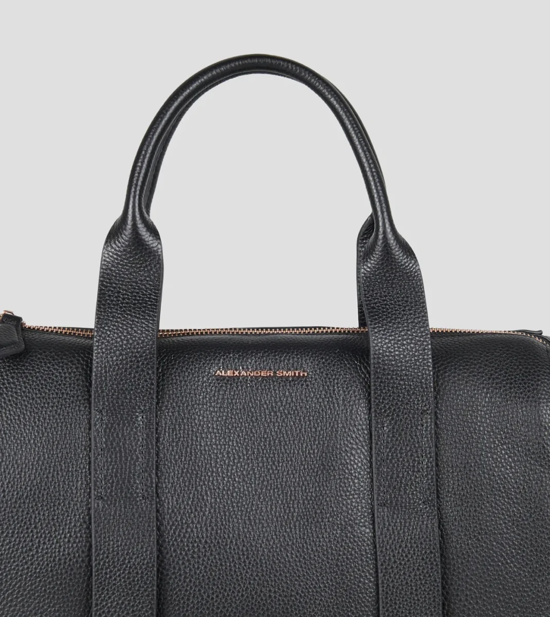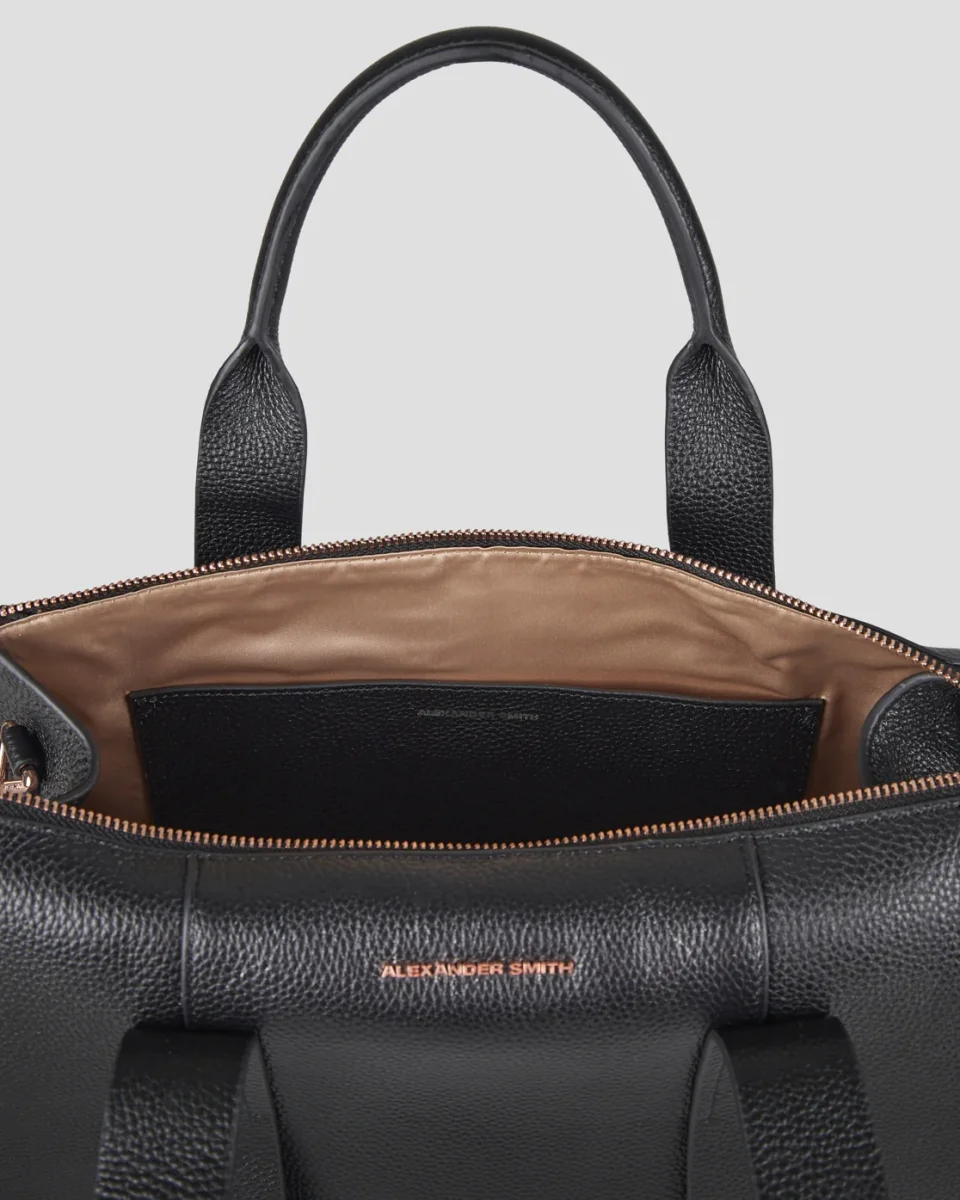 Bauletto di medie dimensioni realizzato in morbida pelle di vitello pieno fiore. L’articolo ha due comodi manici piu’ la tracolla lunga a nastro regolabile e removibile. Le linee essenziali e pulite danno un’identita’ stilistica ben precisa alla borsa. Logo e rifiniture metalliche in color rame.