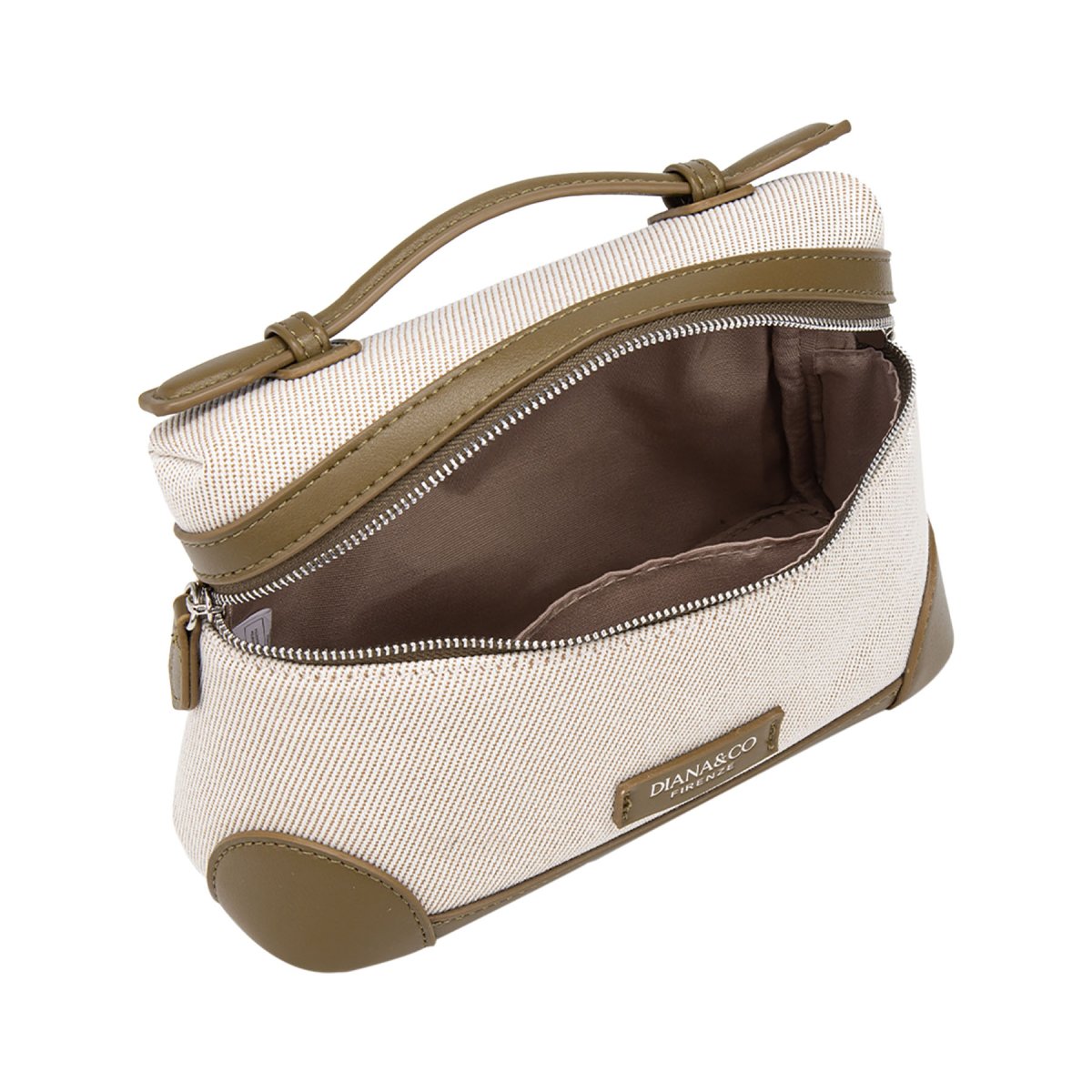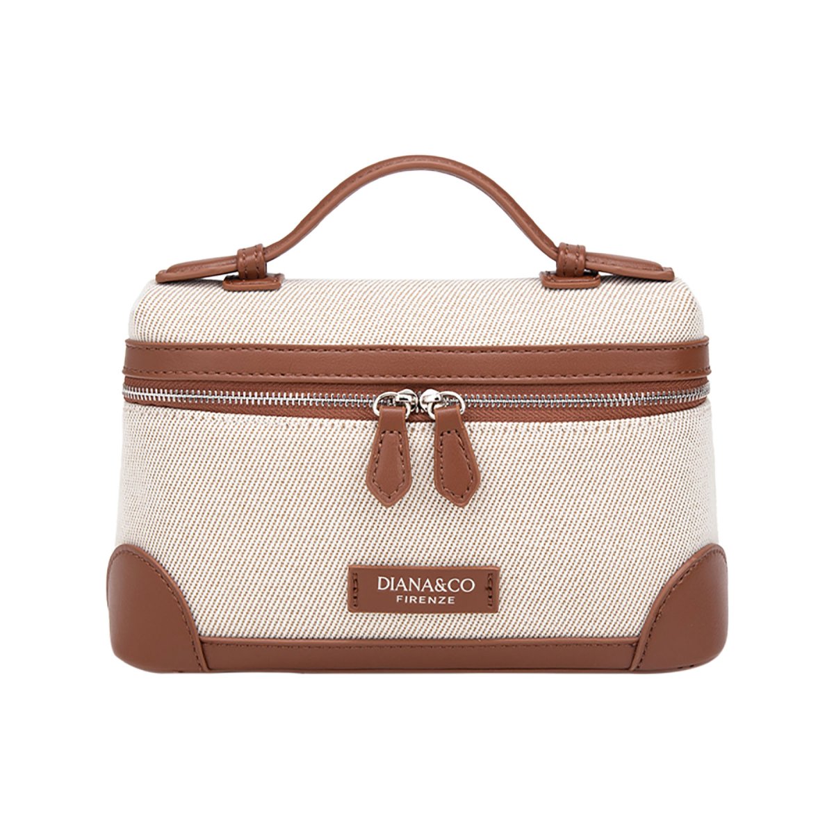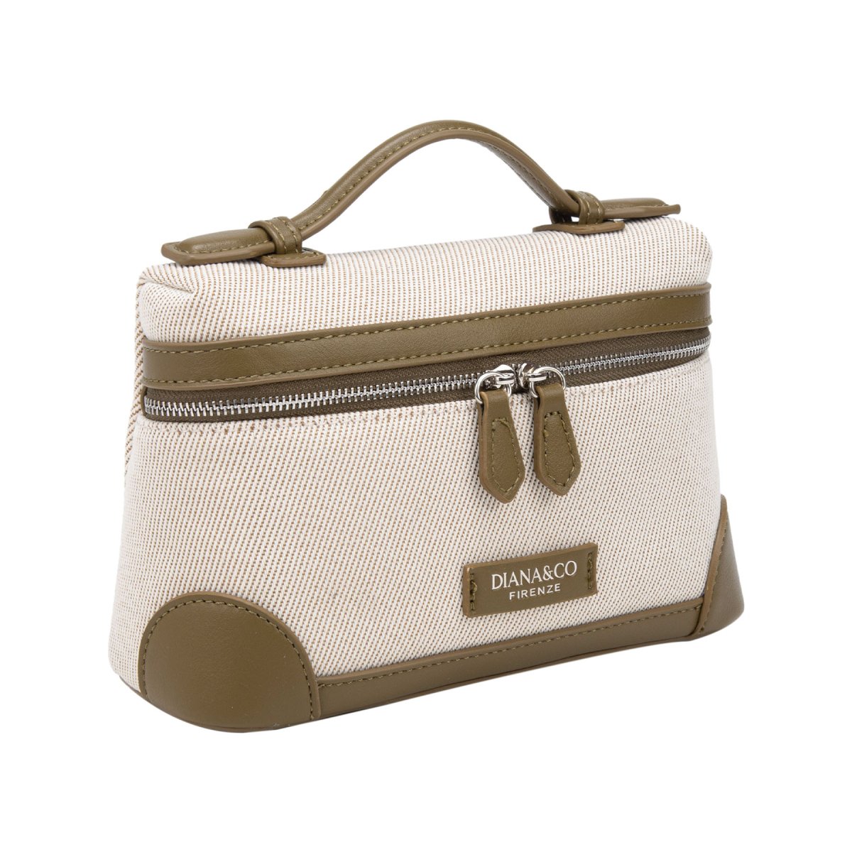 Elegante beauty case in canvas similpelle. Dotato di manico superiore e doppia zip, unisce design classico e praticità per custodire i tuoi accessori con stile.