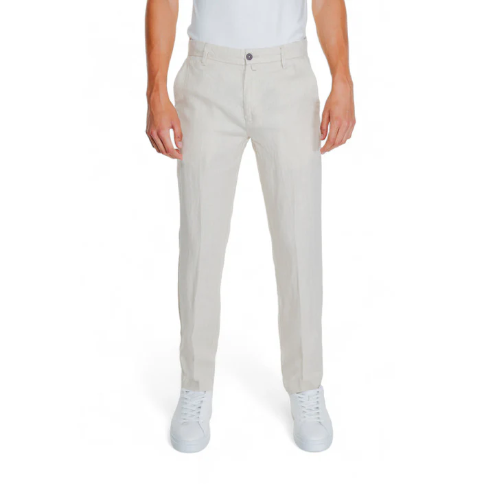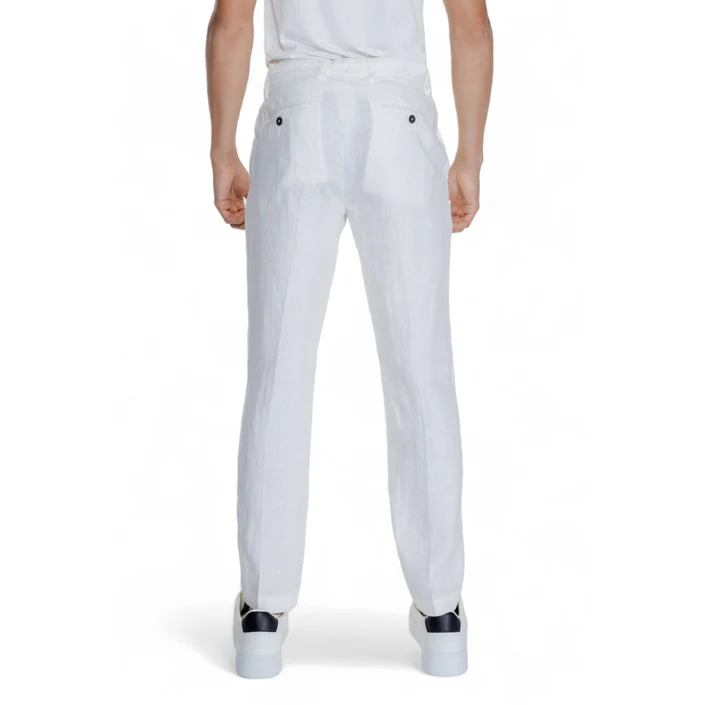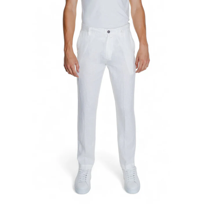 ๐ Pantaloni Uomo Borghese Bianco Monocromo Chiusura Zip e Bottone Tasche Anteriori e Posteriori 100% Lino Primavera/Estate – Stile Italiano Elegante