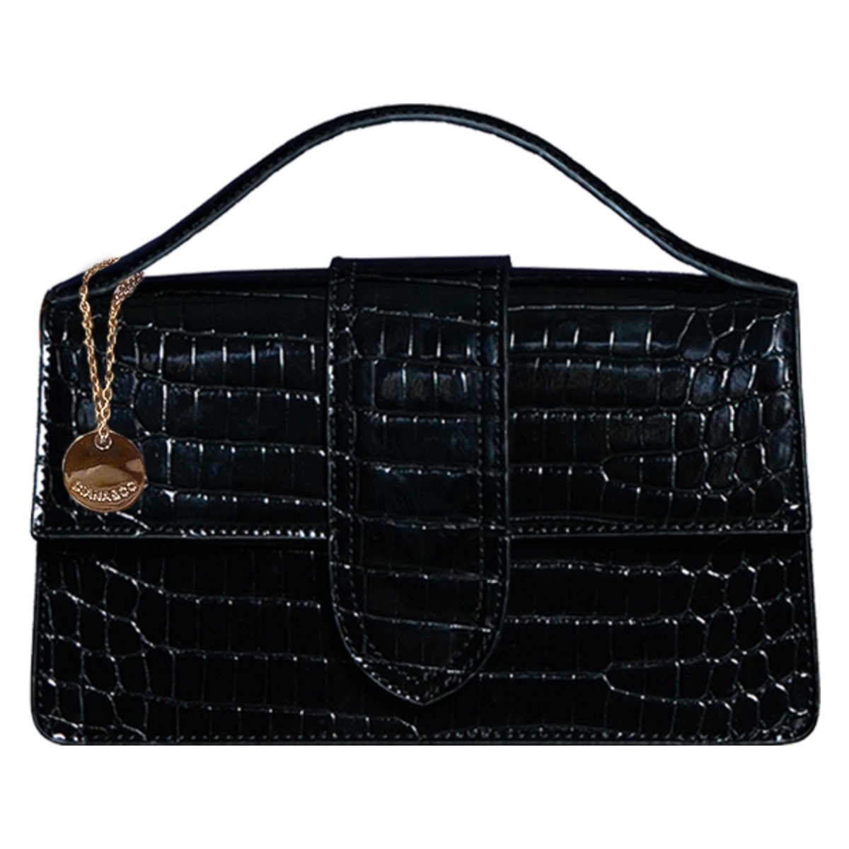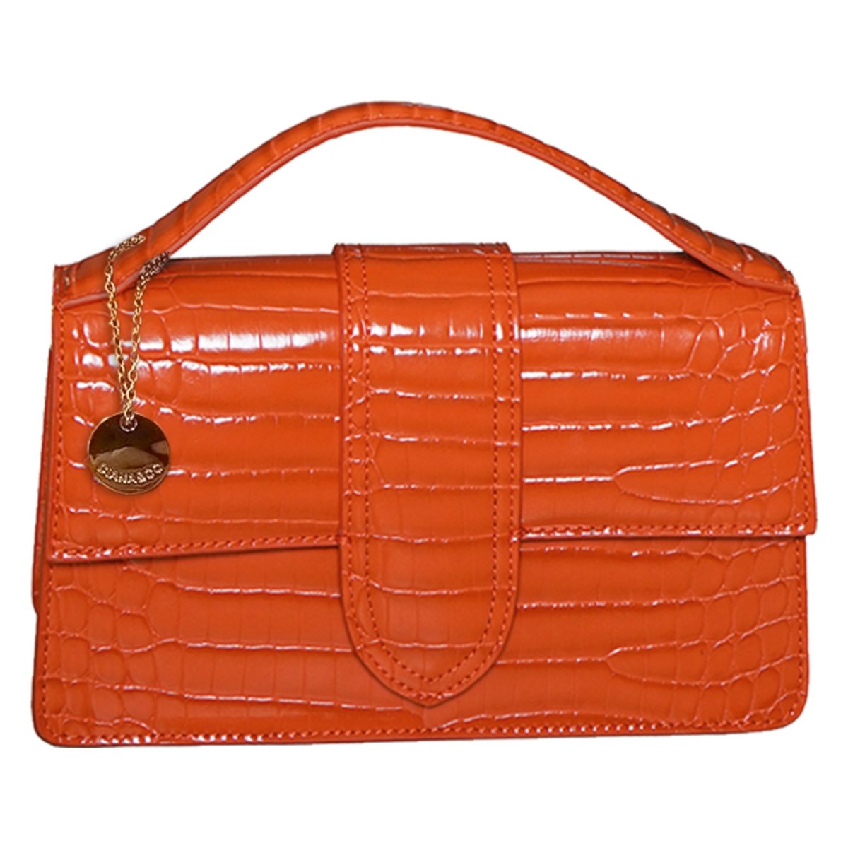 BORSA A COCCODRILLO CON MANICO PATTINA FRONTALE CON BOTTONE TRACOLLA LUNGA RIMOVIBILE E REGOLABILE CHIUSURA CON ZIP TASCHE INTERNE PACKAGE: STUFFED MATERIAL: 100%PU