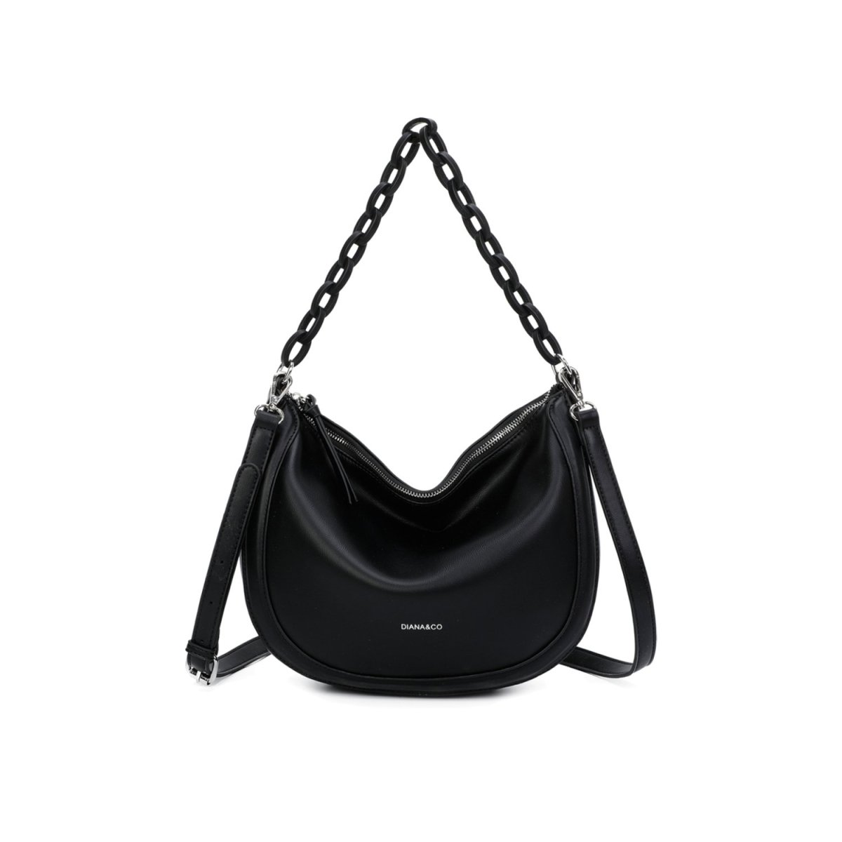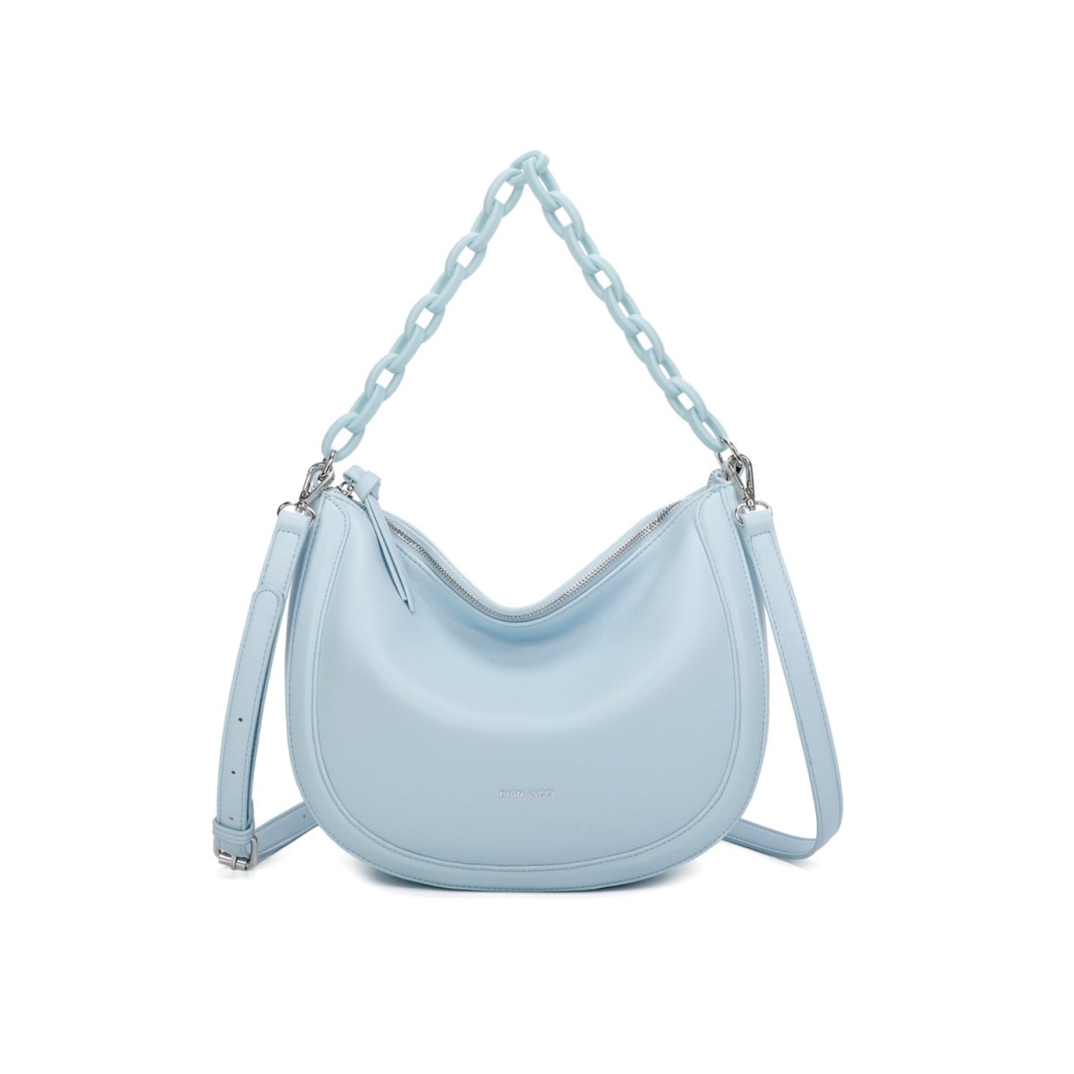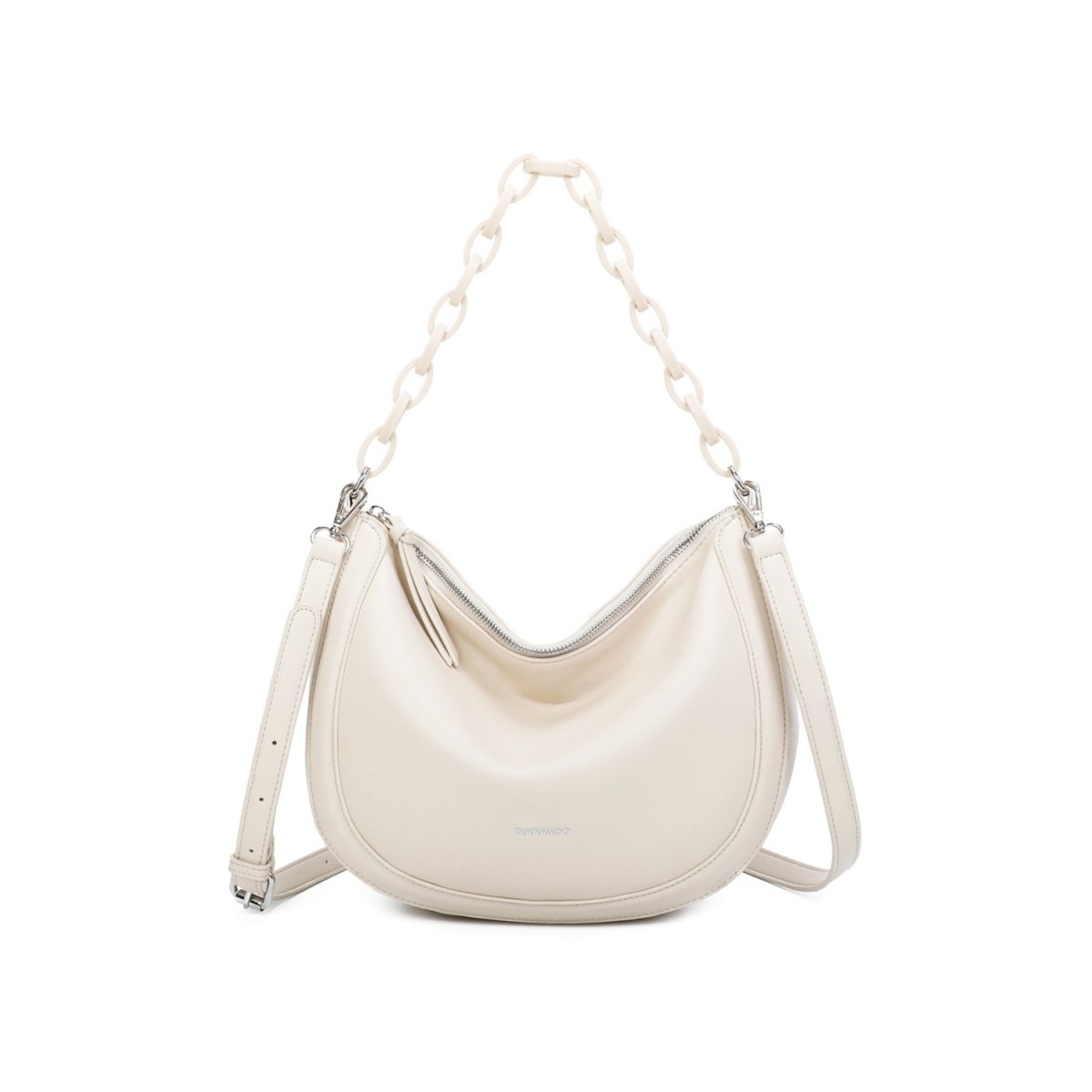 BORSA A SPALLA CON CATENA TRACOLLA RIMOVIBILE E REGOLABILE CHIUSURA CON ZIP DIVISORIO CENTRALE TASCA CENTRALE CON ZIP TASCHE INTERNE COMPOSITION: 100%PU 35CM x 25,5CM x 7CM
