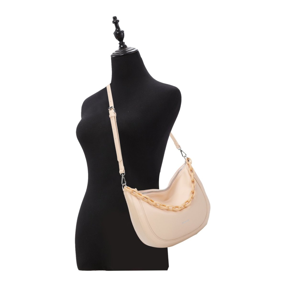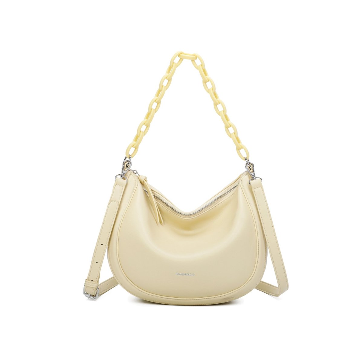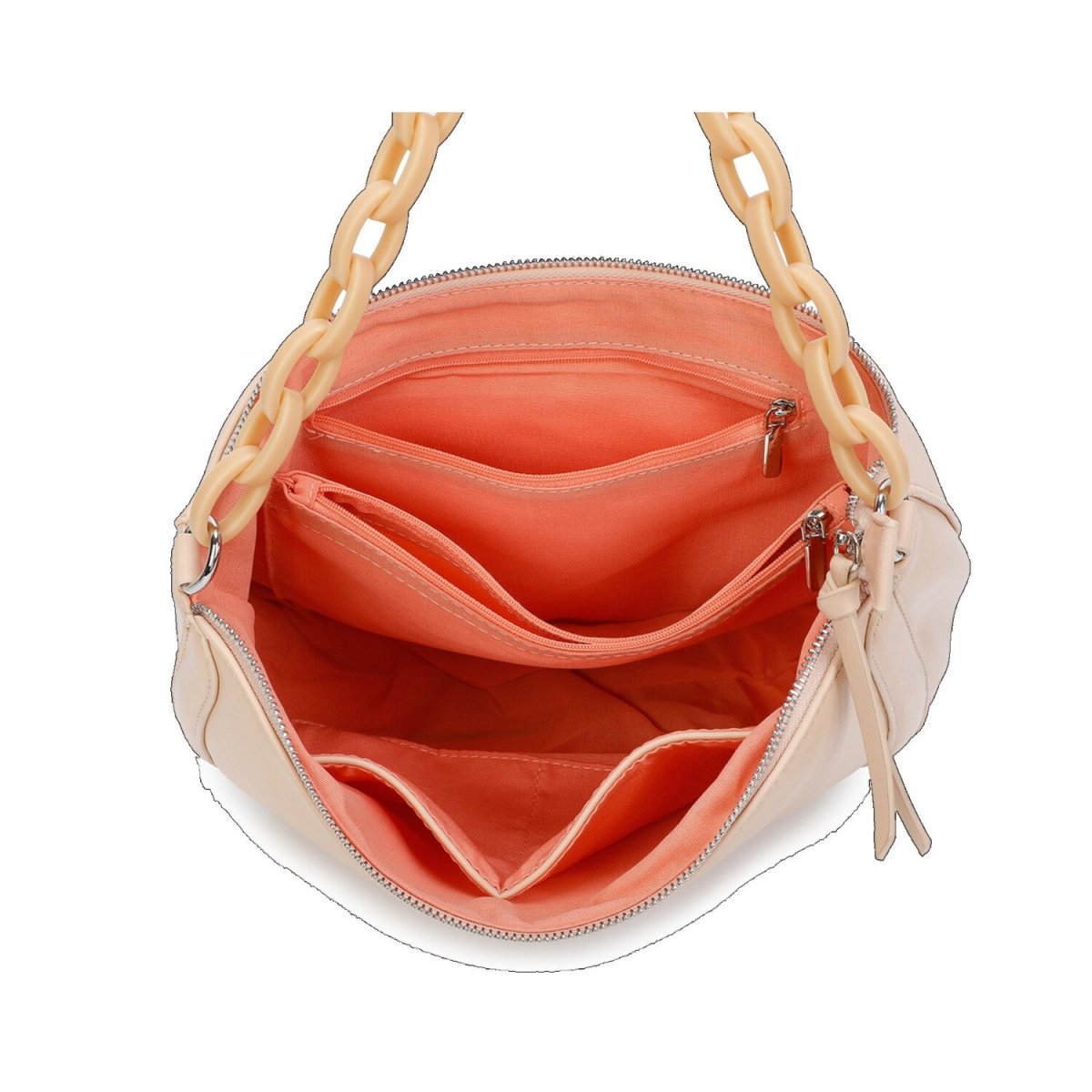BORSA A SPALLA CON CATENA TRACOLLA RIMOVIBILE E REGOLABILE CHIUSURA CON ZIP DIVISORIO CENTRALE TASCA CENTRALE CON ZIP TASCHE INTERNE COMPOSITION: 100%PU 35CM x 25,5CM x 7CM