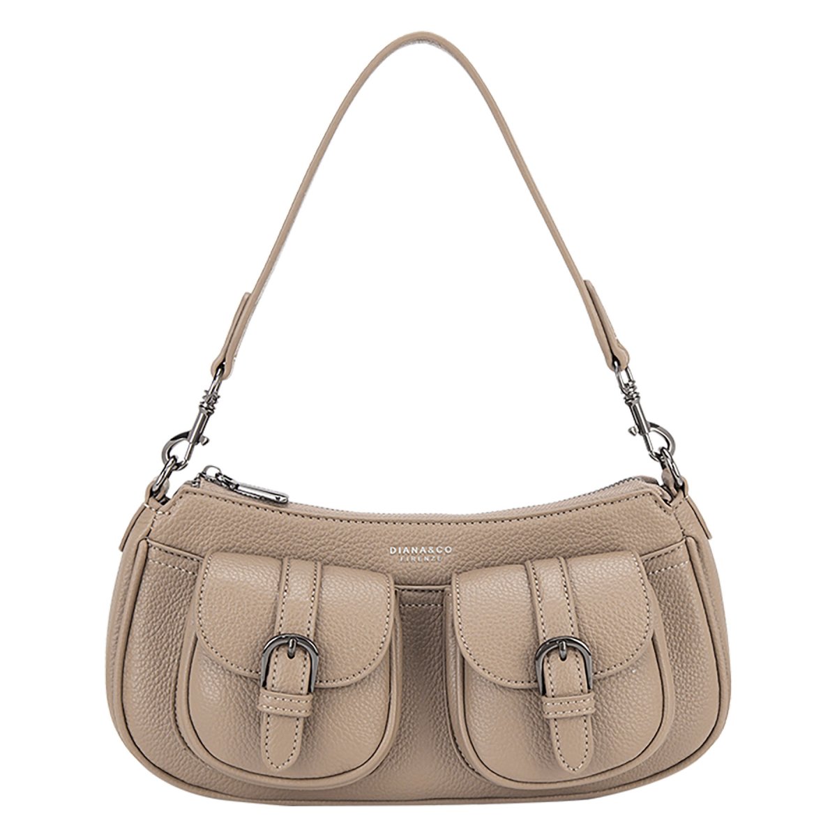 Borsa a spalla Doppie tasche frontali con bottone Manico rimovibile Tracolla rimovibile e regolabile Chiusura con zip Tasche interne Material: 100% PU