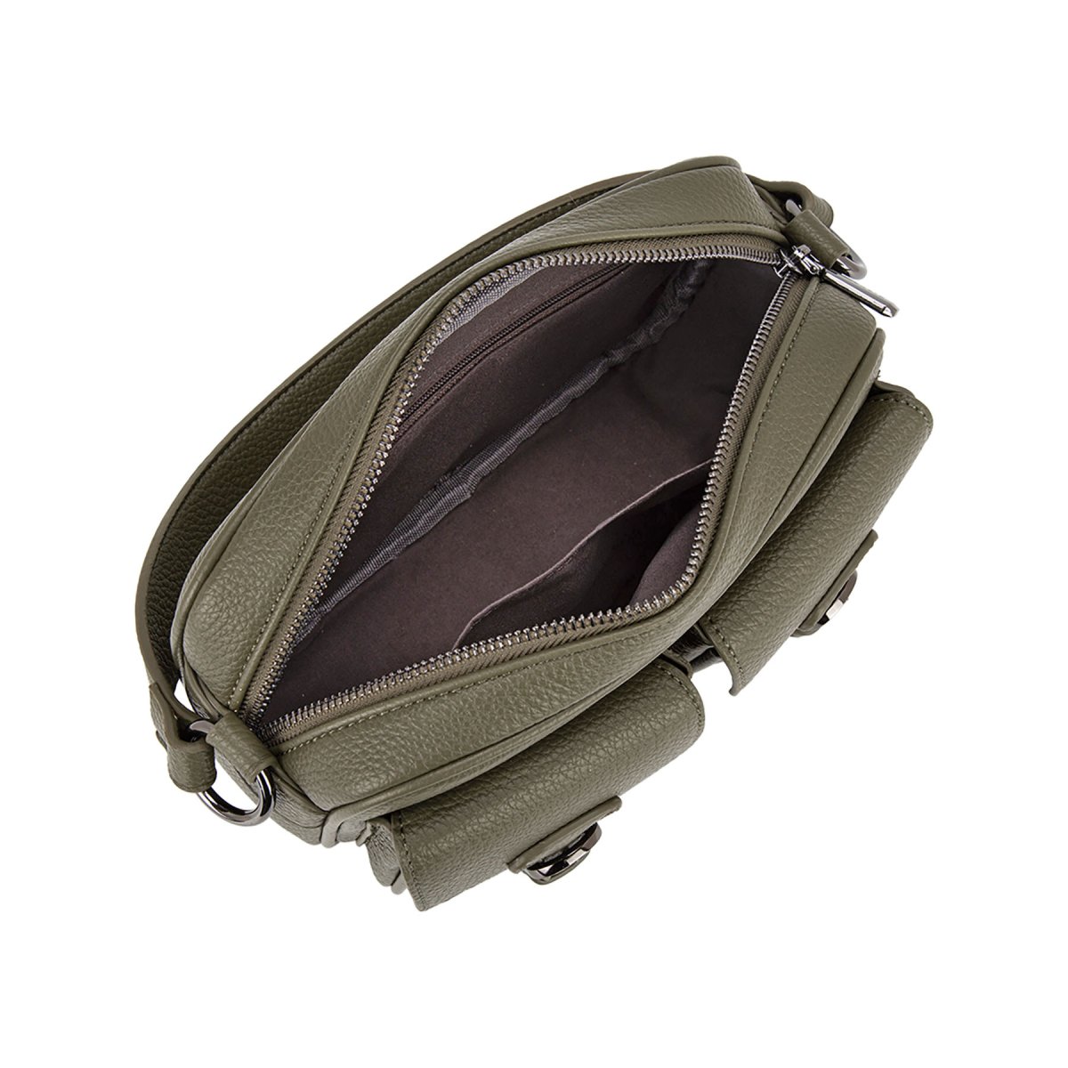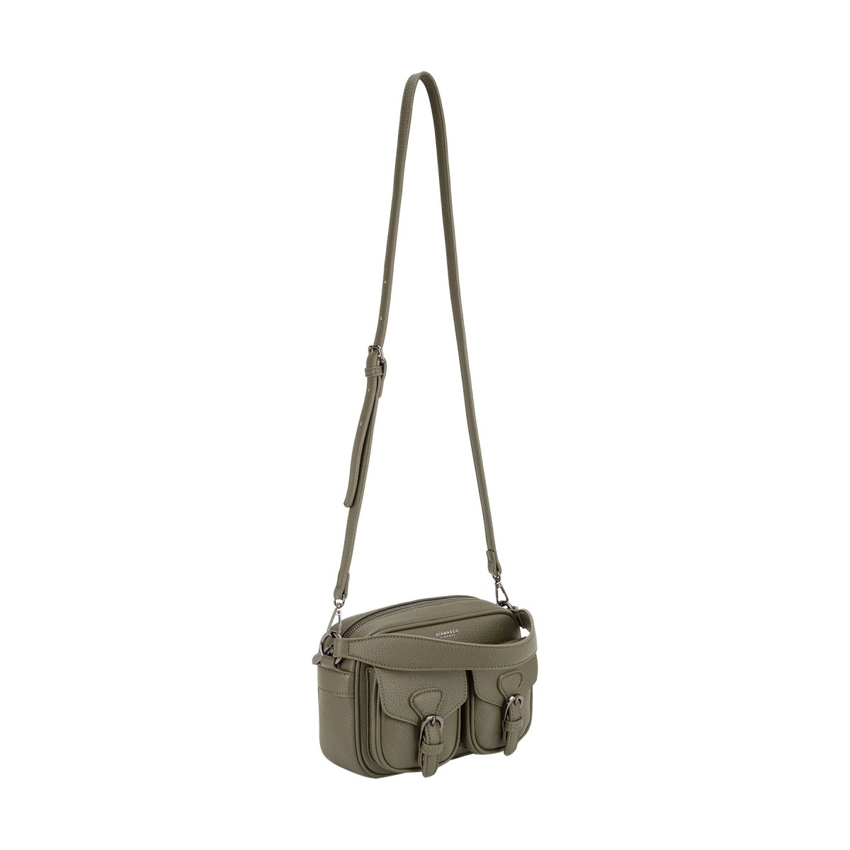 Borsa con manico Doppie tasche frontali con bottone Tracolla rimovibile e regolabile Chiusura con zip Tasche interne Material: 100% PU