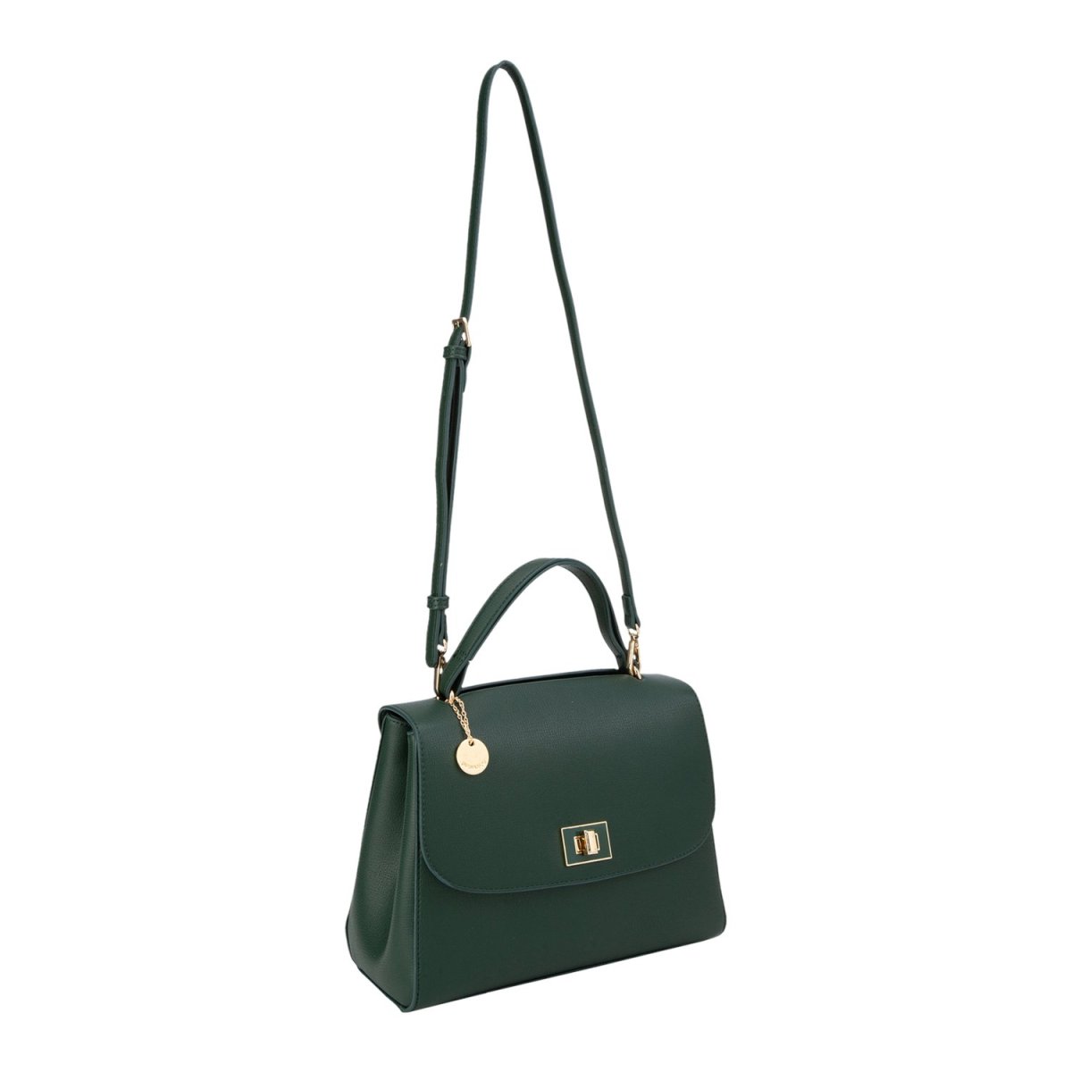 BORSA A MANO E A TRACOLLA PATTINA FRONTALE CON GIRELLO TRACOLLA RIMOVIBILE E REGOLABILE DIVISORIO CENTRALE INTERNO TASCHE INTERNE MATERIAL: PU CIONDOLO DORATO DIANA&CO