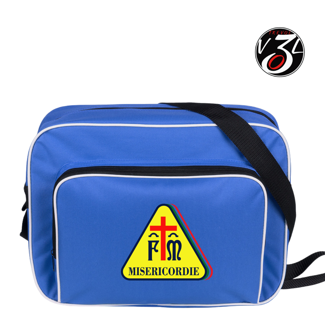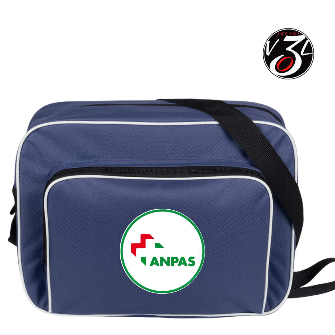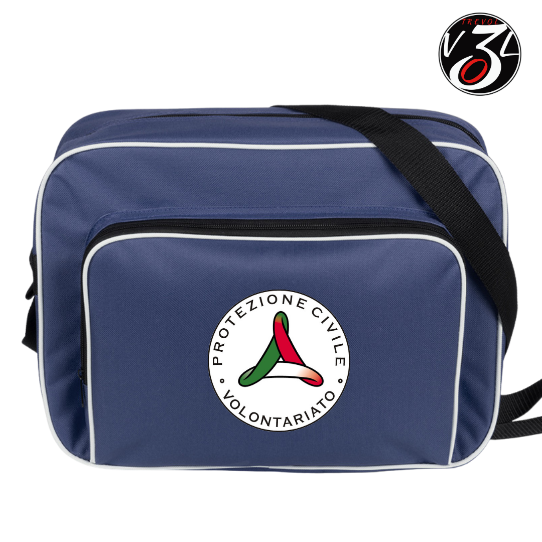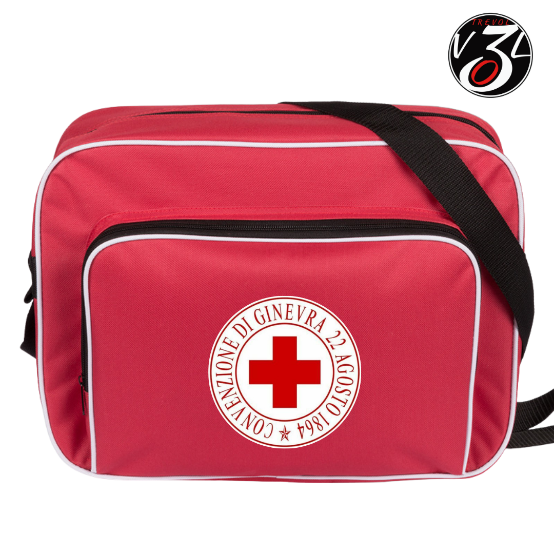 Borsa personalizzata volontari Croce Rossa Italiana, Protezione Civile, Anpas, Misericordie in resistente poliestere 600D dal design casual bicolore, con bordi rinforzati in bianco. Scomparto principale e tasca esterna con chiusura a zip in nero. Con robusta tracolla regolabile in nero. Base rinforzata con superficie antiscivolo.