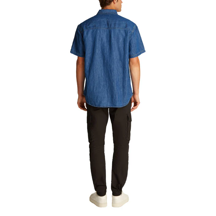 Aggiungi al carrello ora la camicia Calvin Klein Jeans uomo azzurro con manica corta, bottoni, scollo tondo, colletto classico e tasca interna in 47% cotone, 20% cotone organico, 19% lino e 14% lyocell e porta con te lo stile americano iconico con la massima qualitร !
