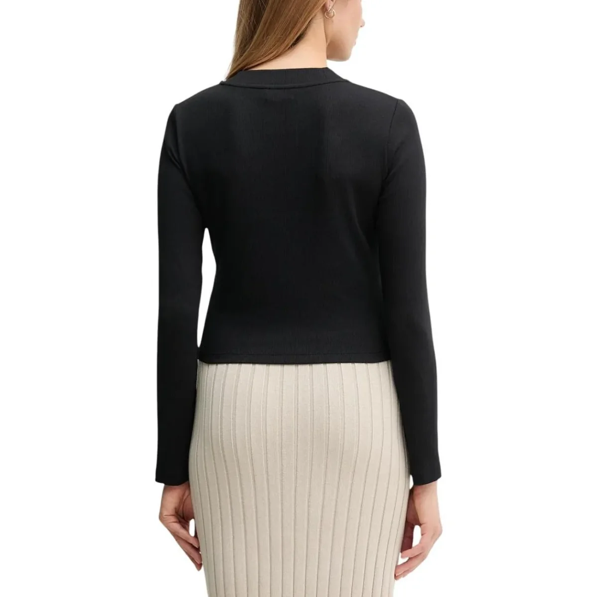 ๐ค Maglia Donna Calvin Klein Jeans Nera in 95% Cotone 5% Elastan con Stampa a Manica Lunga – Stile Americano Casual