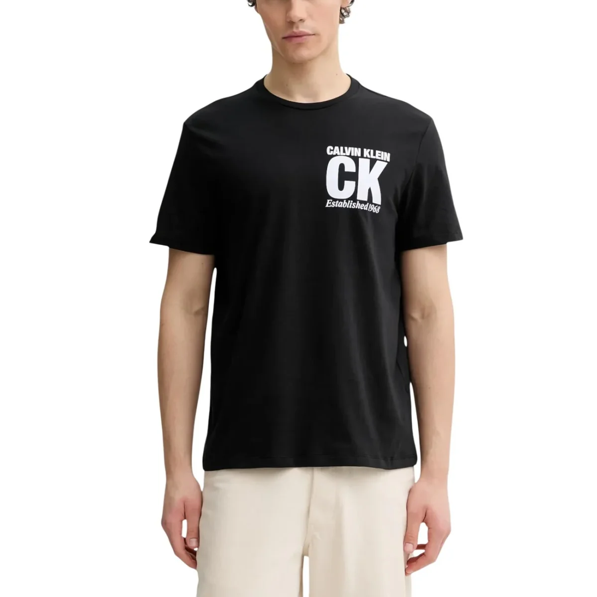 Calvin Klein T-Shirt Uomo Nero Stampa Maniche Corte Scollo Tondo Cotone 100% Primavera Estate LV04RE819G