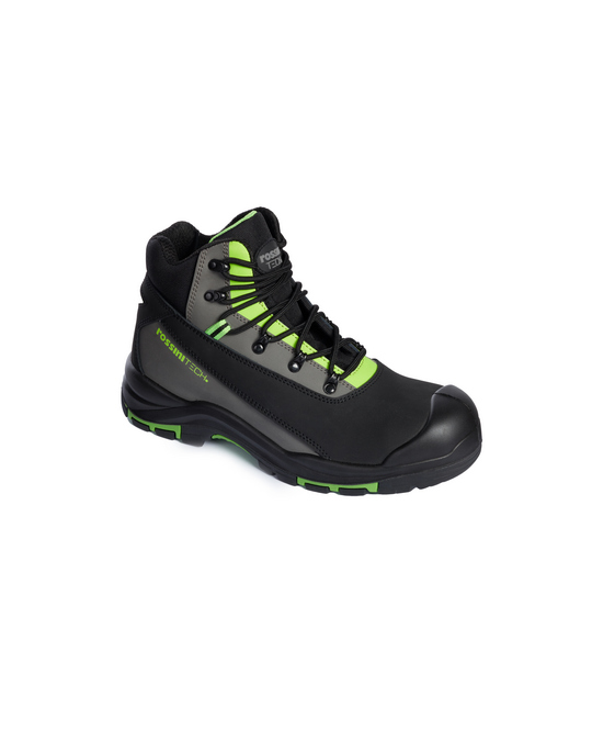 Calzatura alta Hro Creed con tomaia in tessuto nabuk con dettagli in contrasto, linguetta imbottita in canvas mesh, puntale in fibra di vetro, lamina non metallica, fodera interna in tessuto traspirante. Soletta anatomica, traforata, con gel antishock sul tallone che assorbe gli urti, estraibile, traspirante ed antistatica.