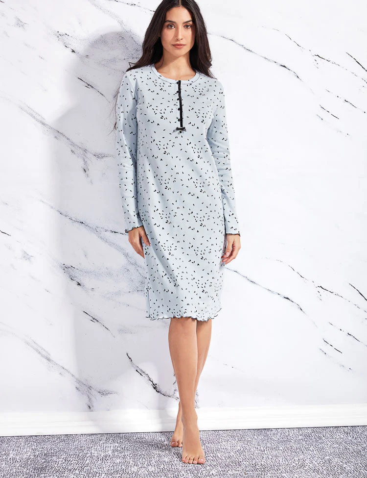 Una camicia da notte in caldo cotone stampato e’ un capo ideale per le notti fresche e confortevoli. Ha un taglio morbido e leggermente svasato, che permette liberta’ di movimento. Il cotone caldo offre una piacevole sensazione sulla pelle. Composizione : 100%cotone