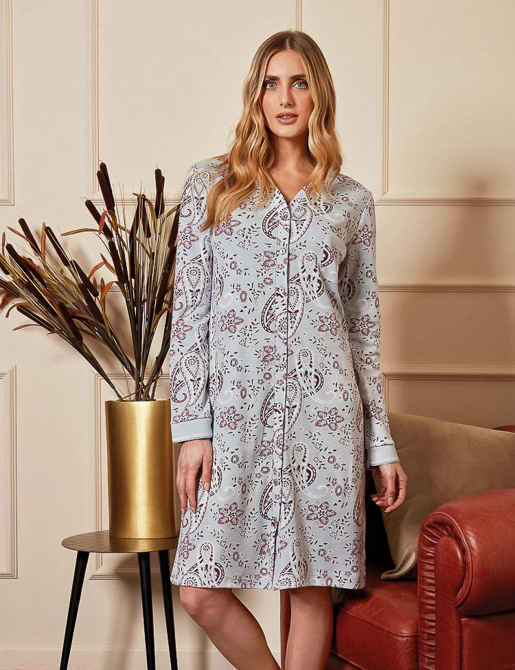 Camicia da notte in caldo cotone stampa cachemire