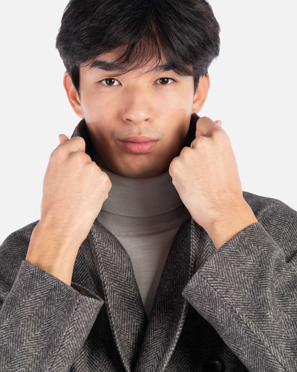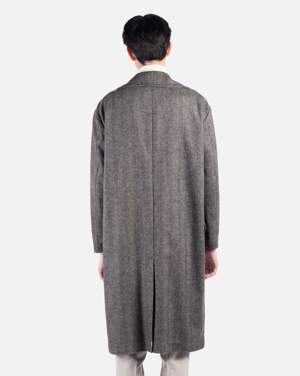 Cappotto doppiopetto dal taglio leggermente over, realizzato in lana con iconico motivo chevron, perfetto per aggiungere un tocco sartoriale al guardaroba invernale. La costruzione morbida delle spalle e la linea dritta offrono una vestibilità comoda e sofisticata, mentre il rever a lancia e le tasche a pattina enfatizzano lo stile classico rivisitato in chiave moderna. Un capo caldo e avvolgente, ideale per look metropolitani eleganti e senza tempo.