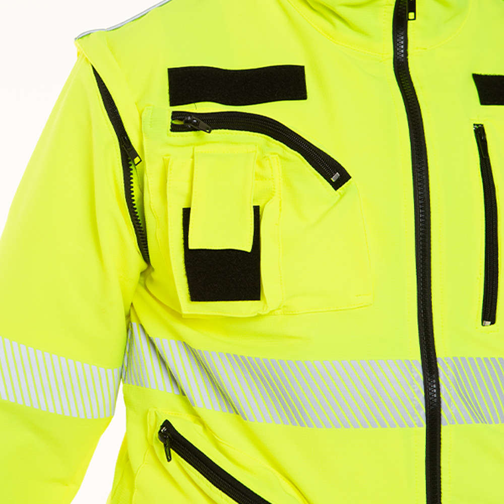 Completo in alta visibilità Certificato UNI EN ISO 20417:2013 Classe 2, progettato pensando alla modernità e alla funzionalità. Ideato per le Ambulanze di Pronto Intervento e le Associazioni, questo completo è la scelta ideale per chi cerca affidabilità e praticità in ogni situazione. Realizzato con un tessuto super elasticizzato di alta qualità, questo completo si adatta perfettamente a ogni movimento, garantendo flessibilità e comodità in qualsiasi contesto operativo. Il set è composto da un pantalone e una giacca innovativa, caratterizzata da maniche con cerniera che consentono di trasformare istantaneamente la giacca in un gilet, adattandosi alle mutevoli esigenze dell’emergenza Modello…