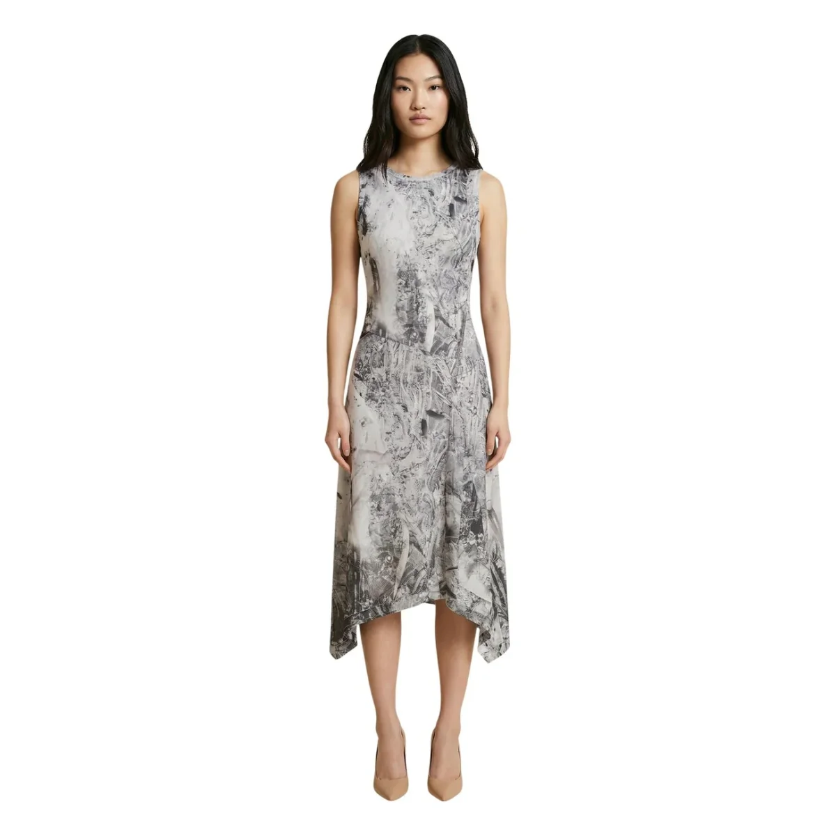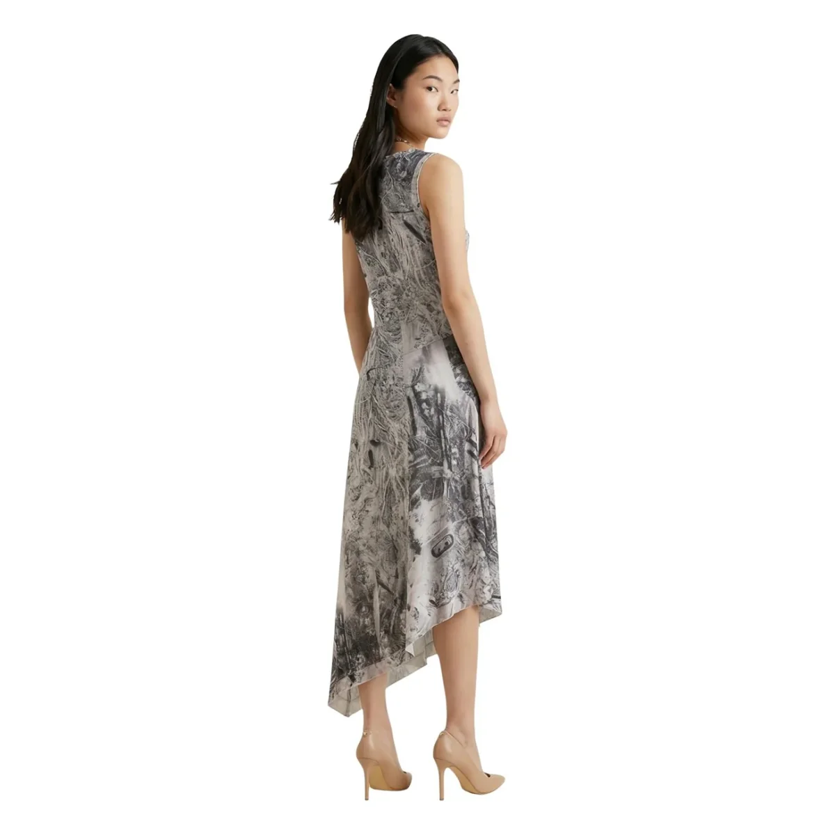 ๐ฉถ Abito Donna Desigual Di Maglina DRAPED Grigio Stampa Smanicato Scollo Tondo 96% Poliestere 4% Elastan Primavera/Estate – Stile Spagnolo Colorato