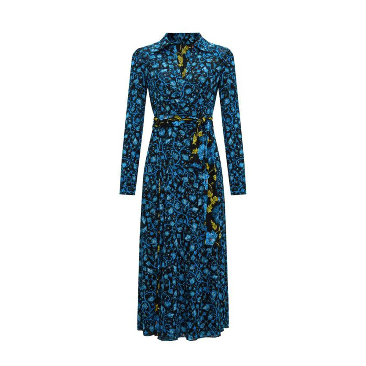 Aggiungi al carrello ora l’abito lungo Diane Von Furstenberg blu con fantasia floreale e porta nel tuo guardaroba lo stile americano luxury per l’autunno inverno!