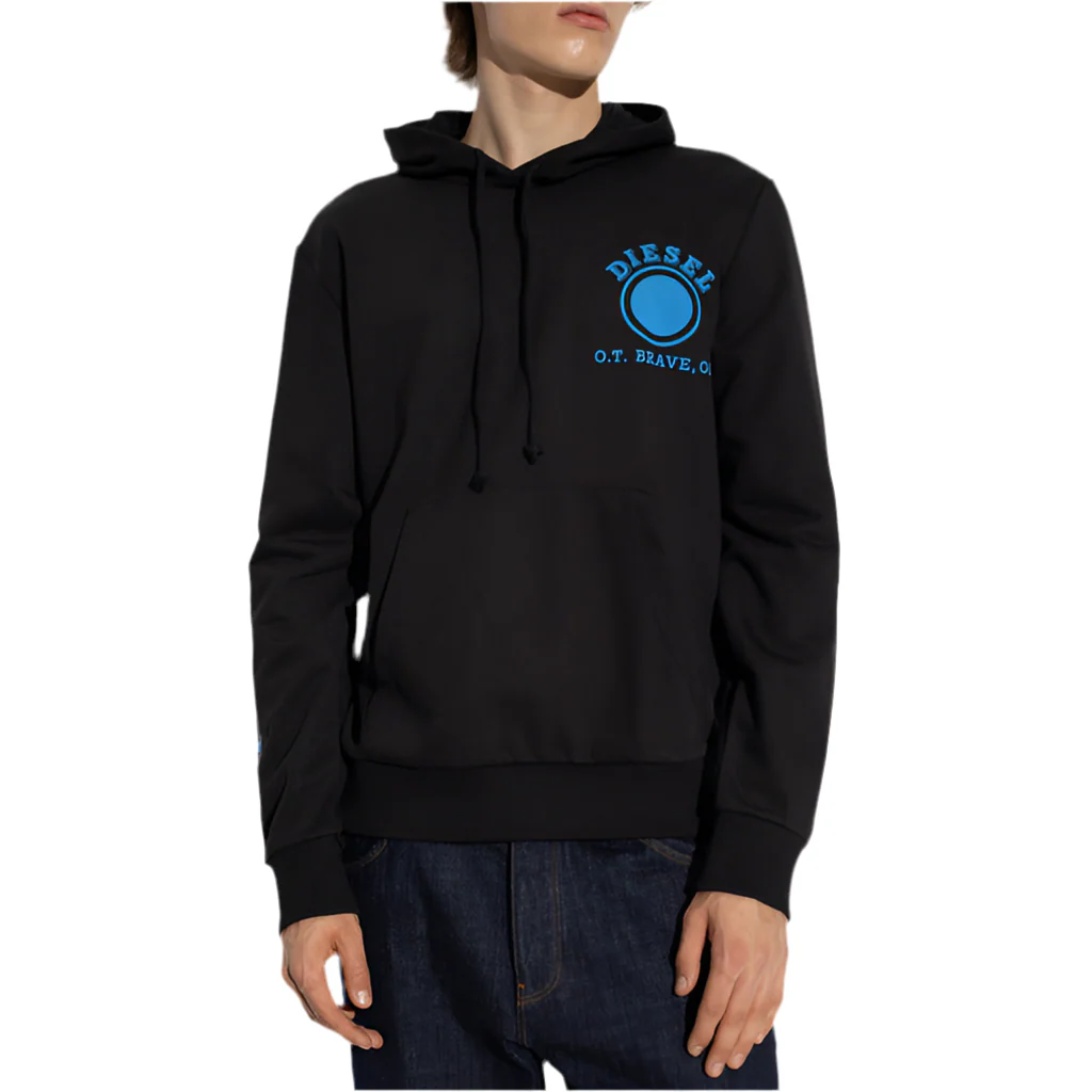 ๐ค Felpa Uomo Diesel Nera con Cappuccio Stampa Maniche Lunghe Scollo Tondo e Tasche Anteriori in Cotone 60% Poliestere 40% – Stile Denim Italiano Autunno/Inverno