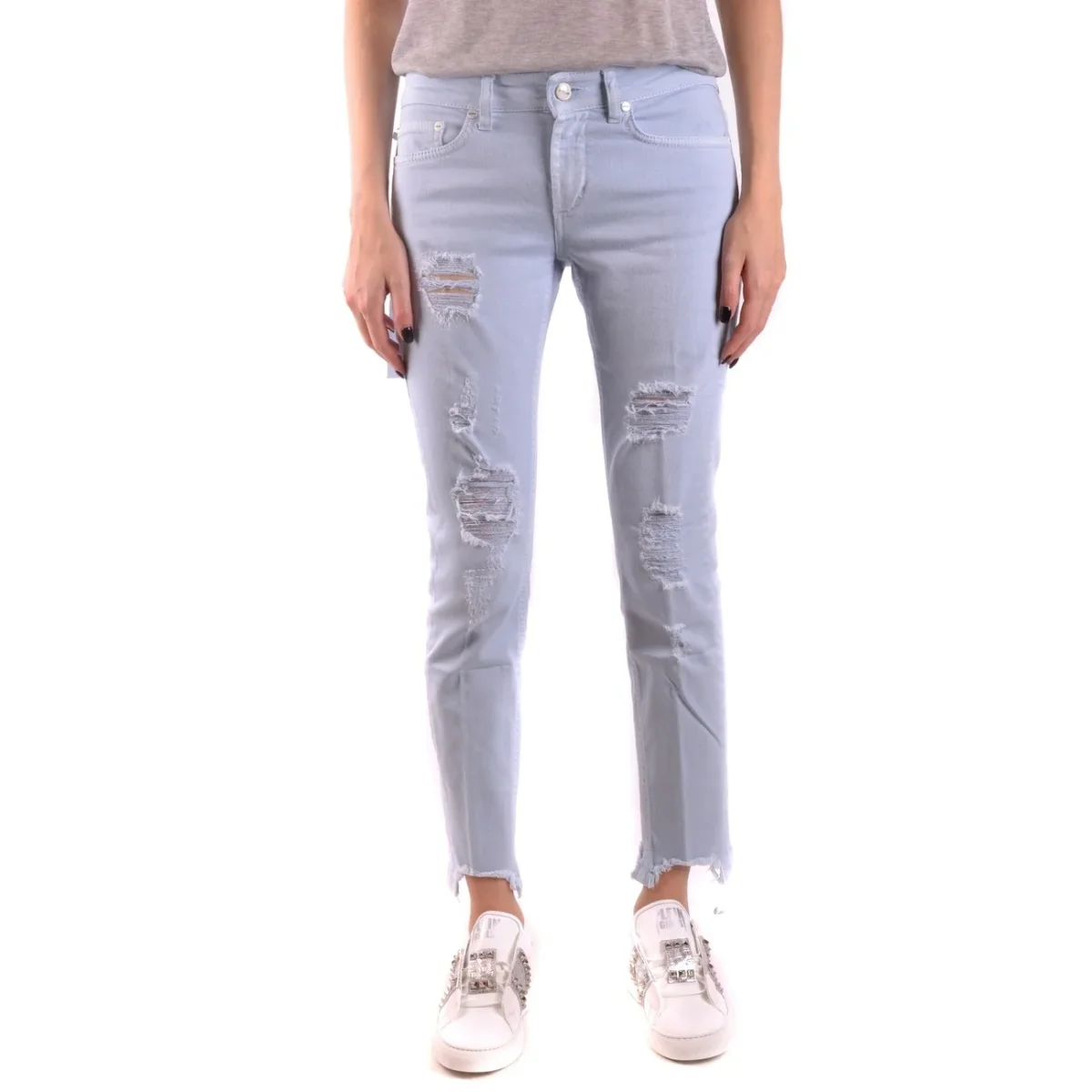๐ Jeans Donna Dondup Azzurri con Zip Bottone Tasche Anteriori e Posteriori Effetto Strappato in Cotone 98% Elastan 2% – Stile Italiano Luxury Primavera/Estate