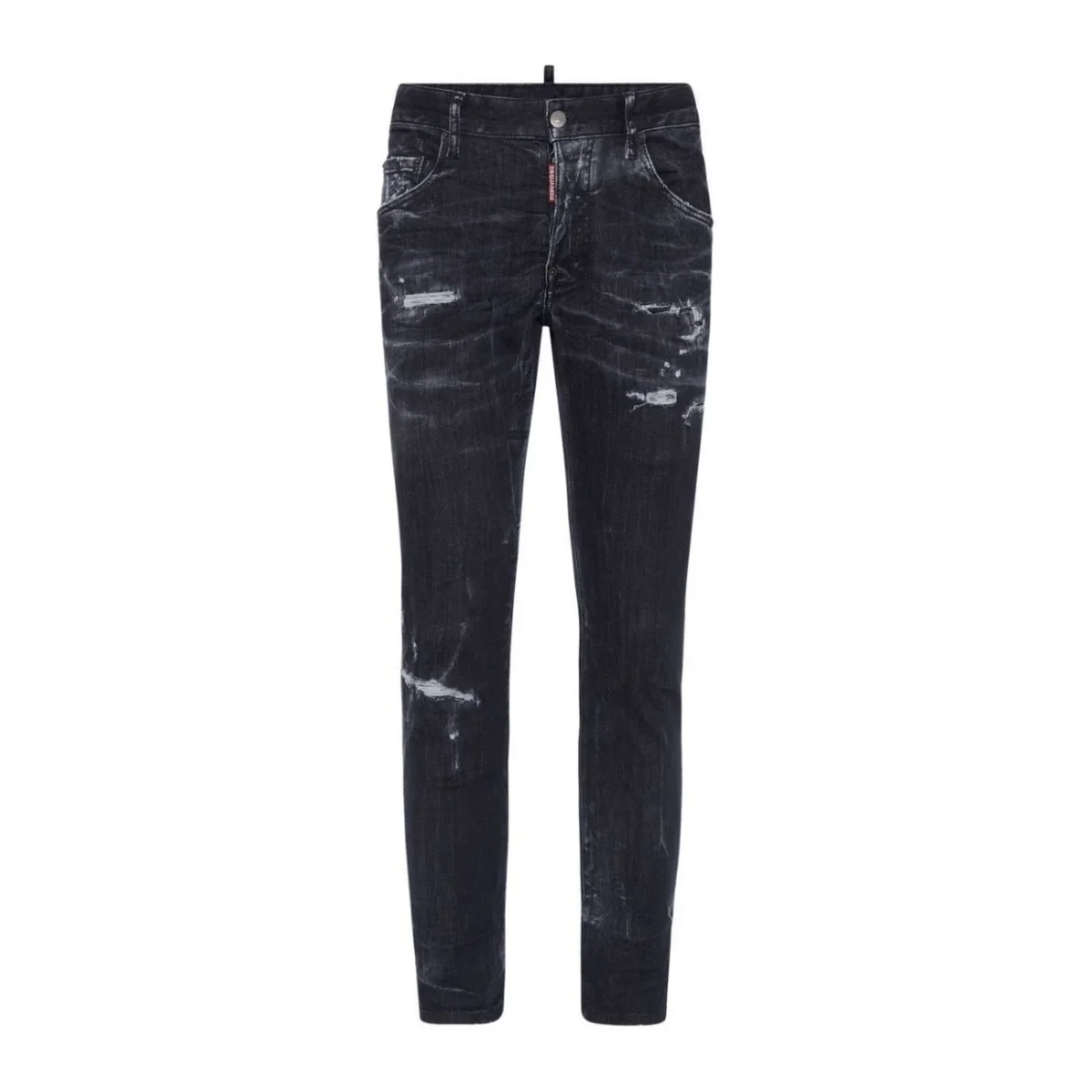 โจ Dsquared2 Jeans Uomo Neri con Bottoni Effetto Strappato e Macchiato – Stile Italiano Trendy