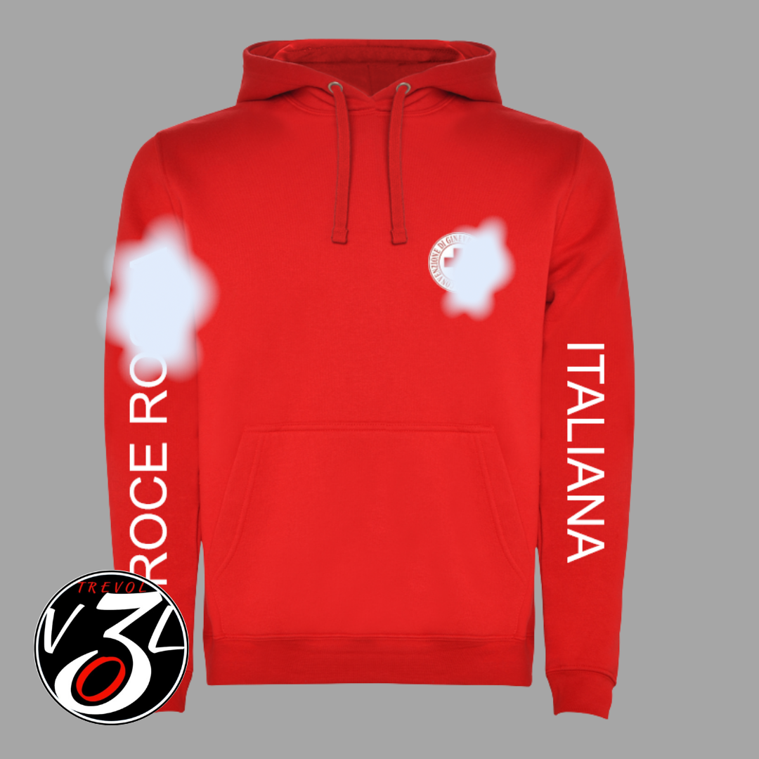 Felpa 2026 CRI con cappuccio. Tessuto caldo e morbido con tasca a marsupio. Loghi istituzionali su petto e maniche. Stile e orgoglio Croce Rossa.