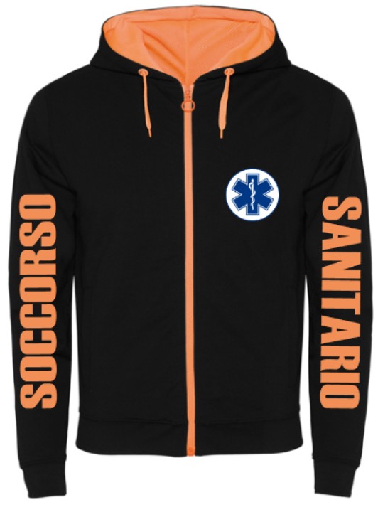 Felpa Fuji Personalizzata con inserti e cappuccio a contrasto e polsini in costina. varie possibilità di personalizzazione.