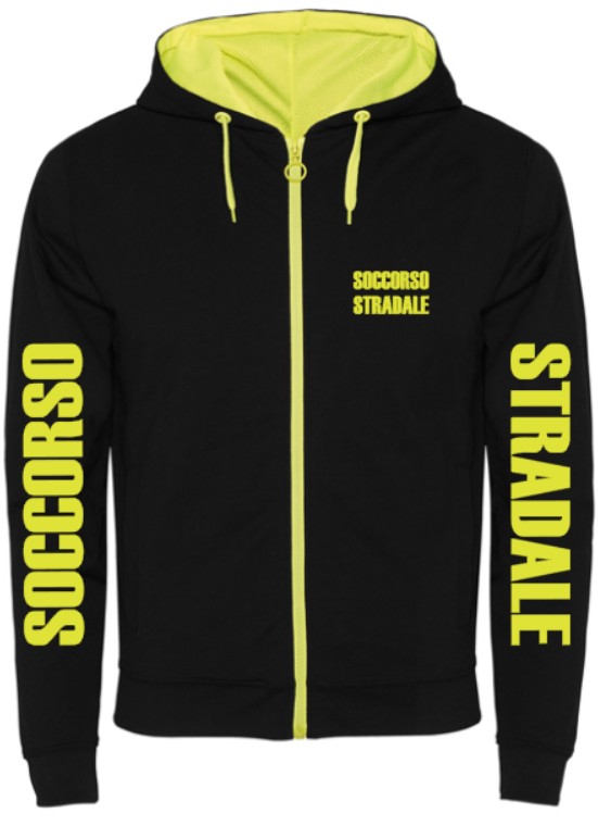 Felpa Fuji Soccorso Stradale con inserti e cappuccio a contrasto e polsini in costina. Personalizzata soccorso stradale.