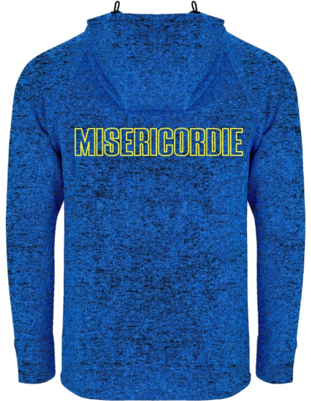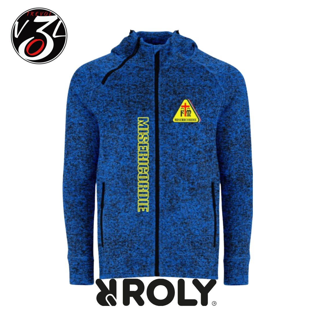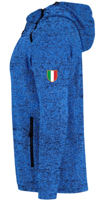 Felpa misericordie con cappuccio e cerniere iniettate con tiretto di design. La cerniera centrale ha il protettore per il mento inoltre dispone di una seconda cerniera decorativa sul collo per facilitare l’apertura. Il collo alto dispone di regolatori di design e copri cuciture interne. Inoltre la felpa è fornita di due tasche frontali con cerniera. La parte posteriore è più lunga rispetto alla parte anteriore ed in aggiunta ha i regolatori di design.