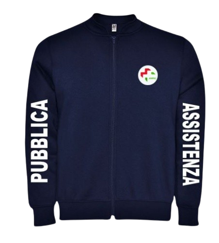 Felpa con interno spazzolato a maniche lunghe e colletto coreana. Copri cuciture rinforzate sul collo. Zip centrale con tiretto. Tasche laterali. Costina 1×1 su polsini e girovita.