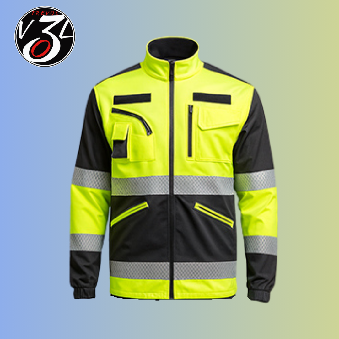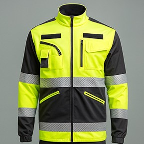 Giacca elasticizzata PC in tessuto tecnico elasticizzato 92% Poliestere 8% Spandex da 200 gr mq con bande rifrangenti ad alta visibilità.