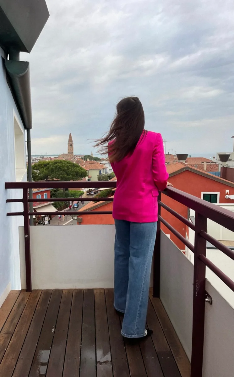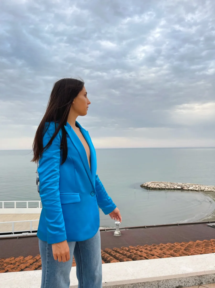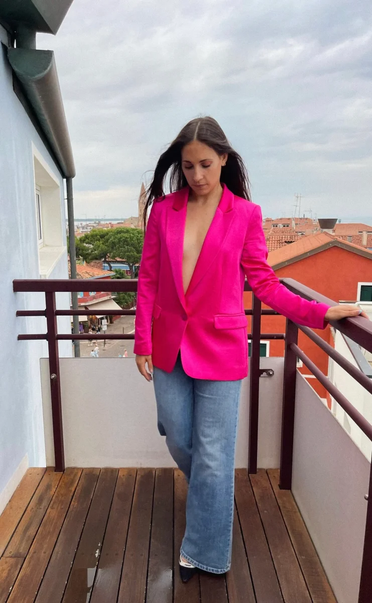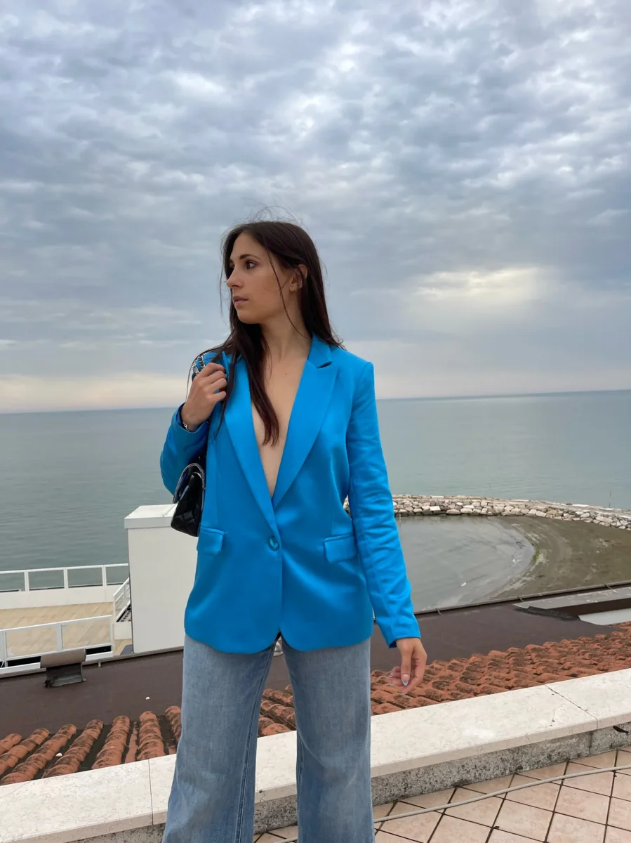 Giacca in raso di viscosa monopetto. Made in Italy
