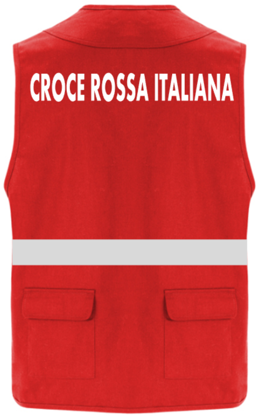 Gilet estivo cri multitasche con collo a V, cerniera centrale con tiretto, tre tasche sul petto con pattina e chiusura a velcro, tasca superiore con anello multifunzione, due tasche laterali con cerniera e tiretto, con due tasche sovrapposte con pattina e chiusura a velcro e due tasche posteriori con pattina e chiusura a velcro. Collo, giromanica e orlo con bordatura. Bande rifrangenti termosaldate. Logo CRI a ricamo Scritta CROCE ROSSA ITALIANA termosaldata