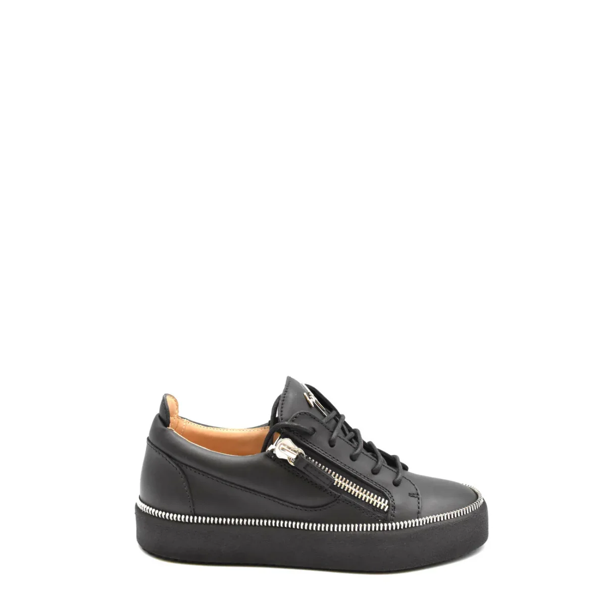 Scopri l’eccellenza italiana di Giuseppe Zanotti con queste sneakers nere in pelle 100% premium con zip e lacci distintivi. Un capo che unisce haute couture italiana e design avant-garde per un look impeccabile e di lusso assoluto.