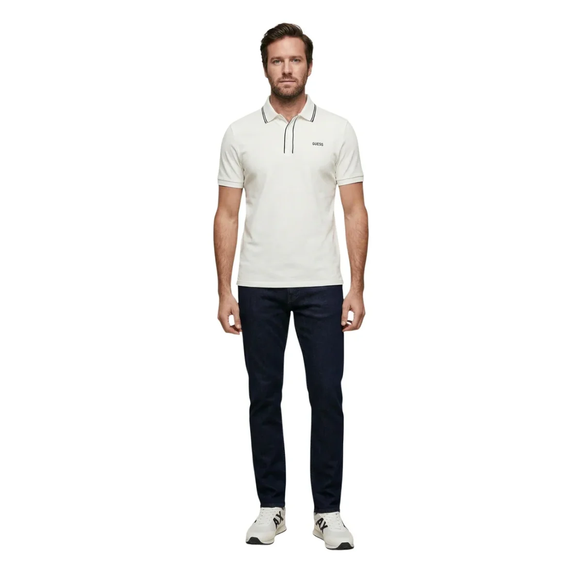 La polo Guess bianca รจ il capo essenziale che ogni uomo dovrebbe avere. Il bianco รจ fresco e versatile, garantendo stile americano iconico e raffinatezza assoluta.