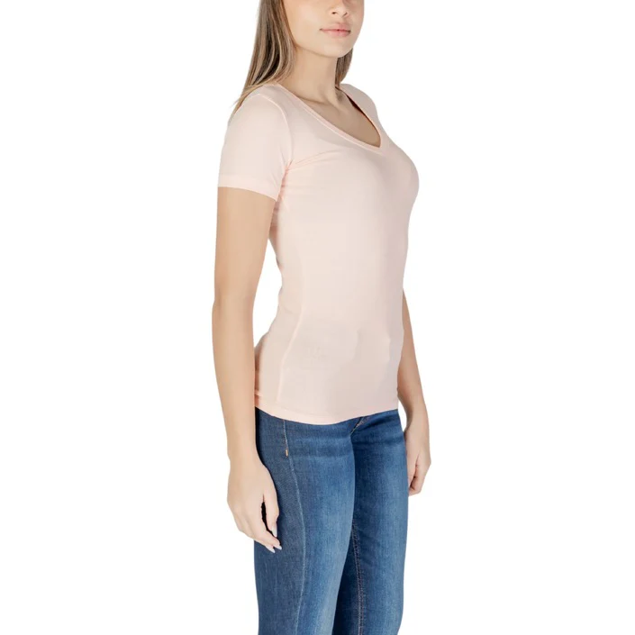 Guess T-Shirt Donna Rosa Manica Corta Scollo a V 95% Cotone 5% Elastan Primavera/Estate W2YI45 J1314