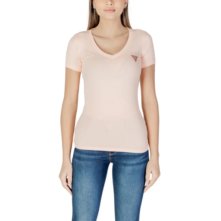 ๐ T-Shirt Donna Guess Rosa Manica Corta Scollo a V 95% Cotone 5% Elastan Primavera/Estate – Stile Glamour Americano