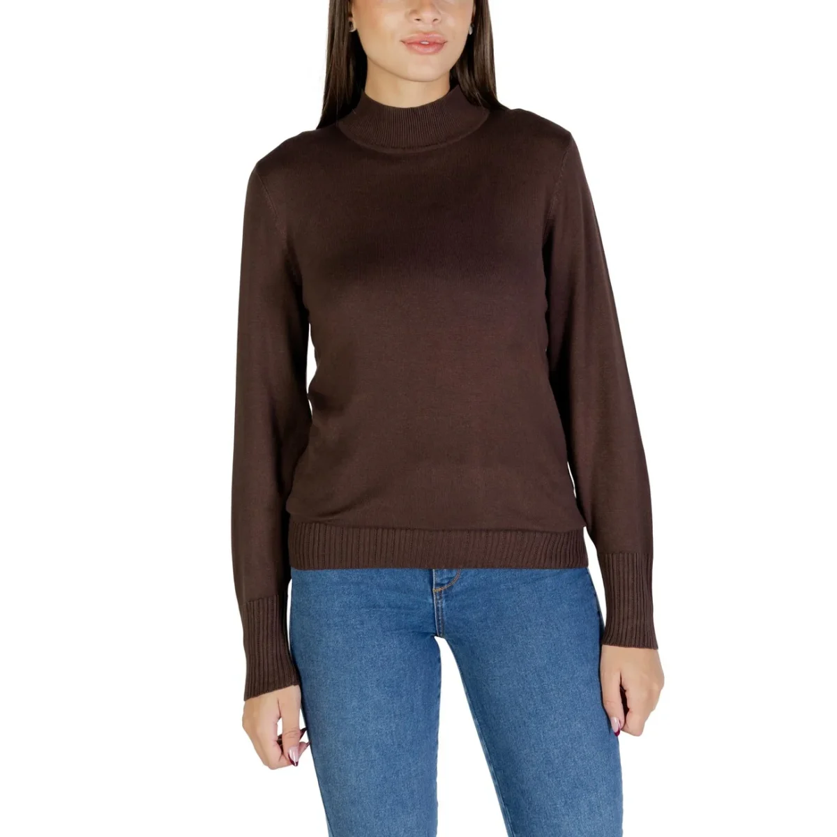 Ichi Maglioncino Donna Bianco Maniche Lunghe – Maglia Viscosa Nylon Scollo Alto