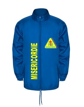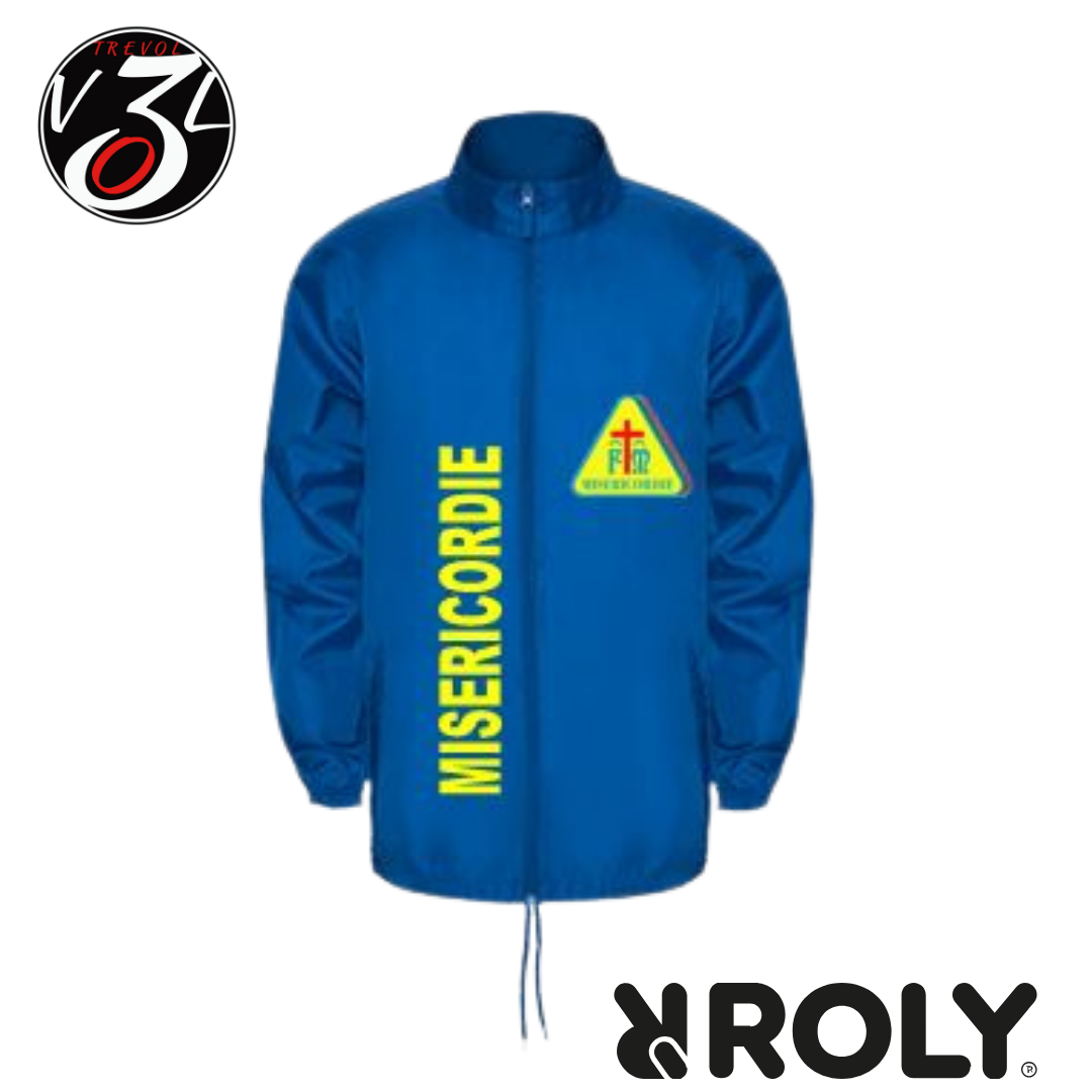 Impermeabile con collo alto e cappuccio rimovibile con cordoncini regolabili e cerniera centrale con estrattore. Due tasche laterali con patta, polsini elasticizzati, girovita a costine con coulisse regolabile all’interno e tasca interna con elastico per piegare e riporre.