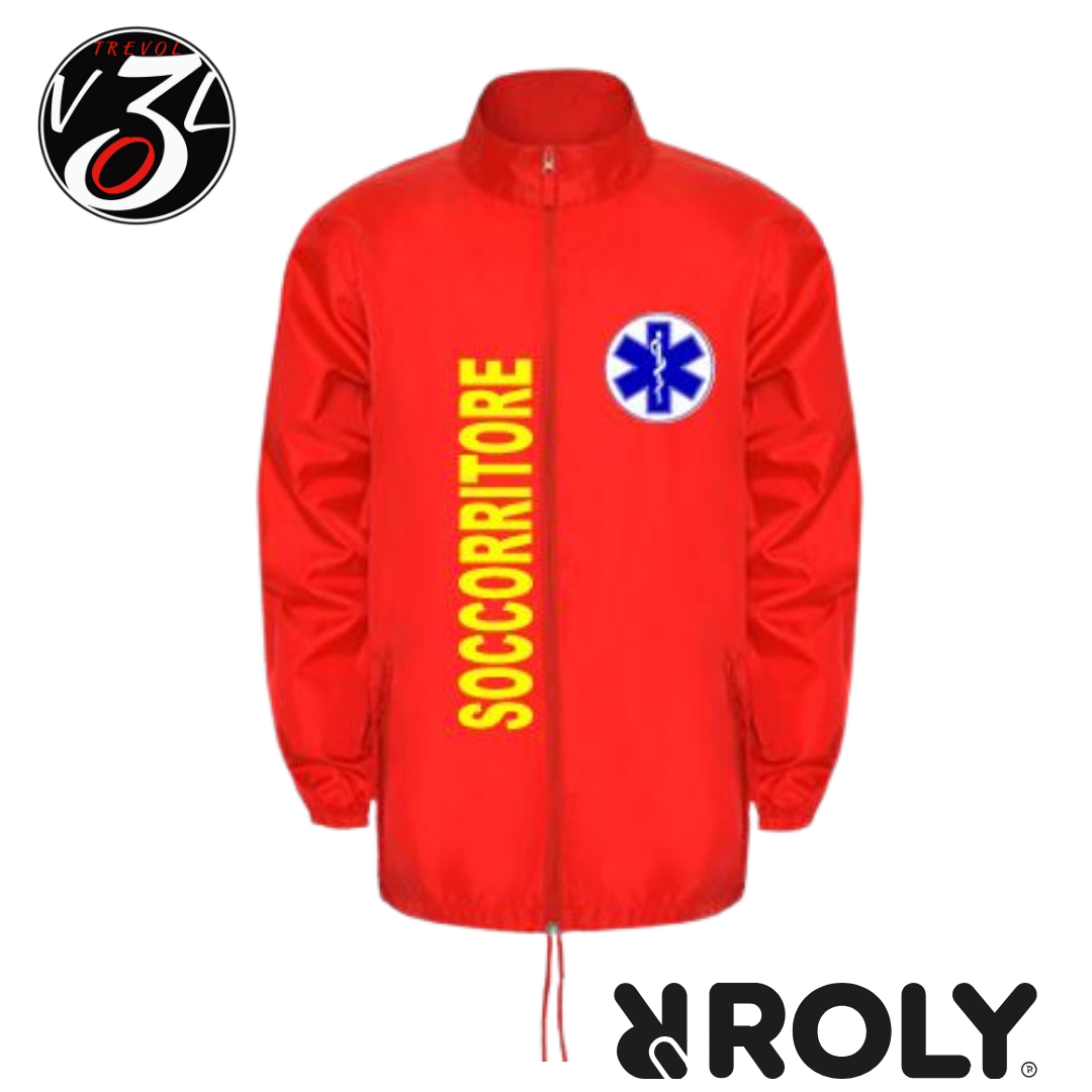 Impermeabile con collo alto e cappuccio rimovibile con cordoncini regolabili e cerniera centrale con estrattore. Due tasche laterali con patta, polsini elasticizzati, girovita a costine con coulisse regolabile all’interno e tasca interna con elastico per piegare e riporre.