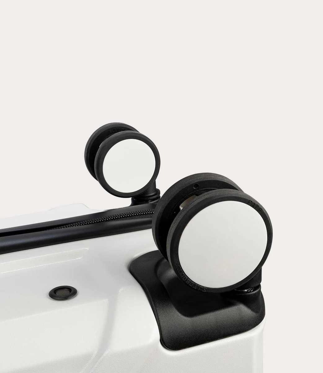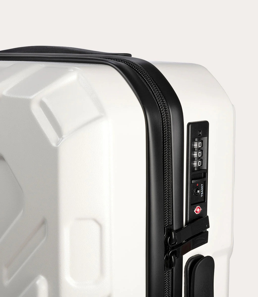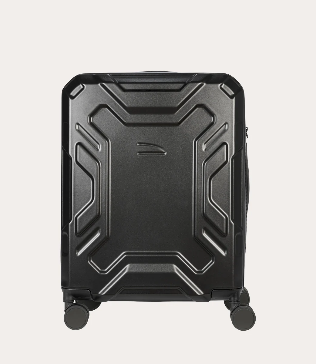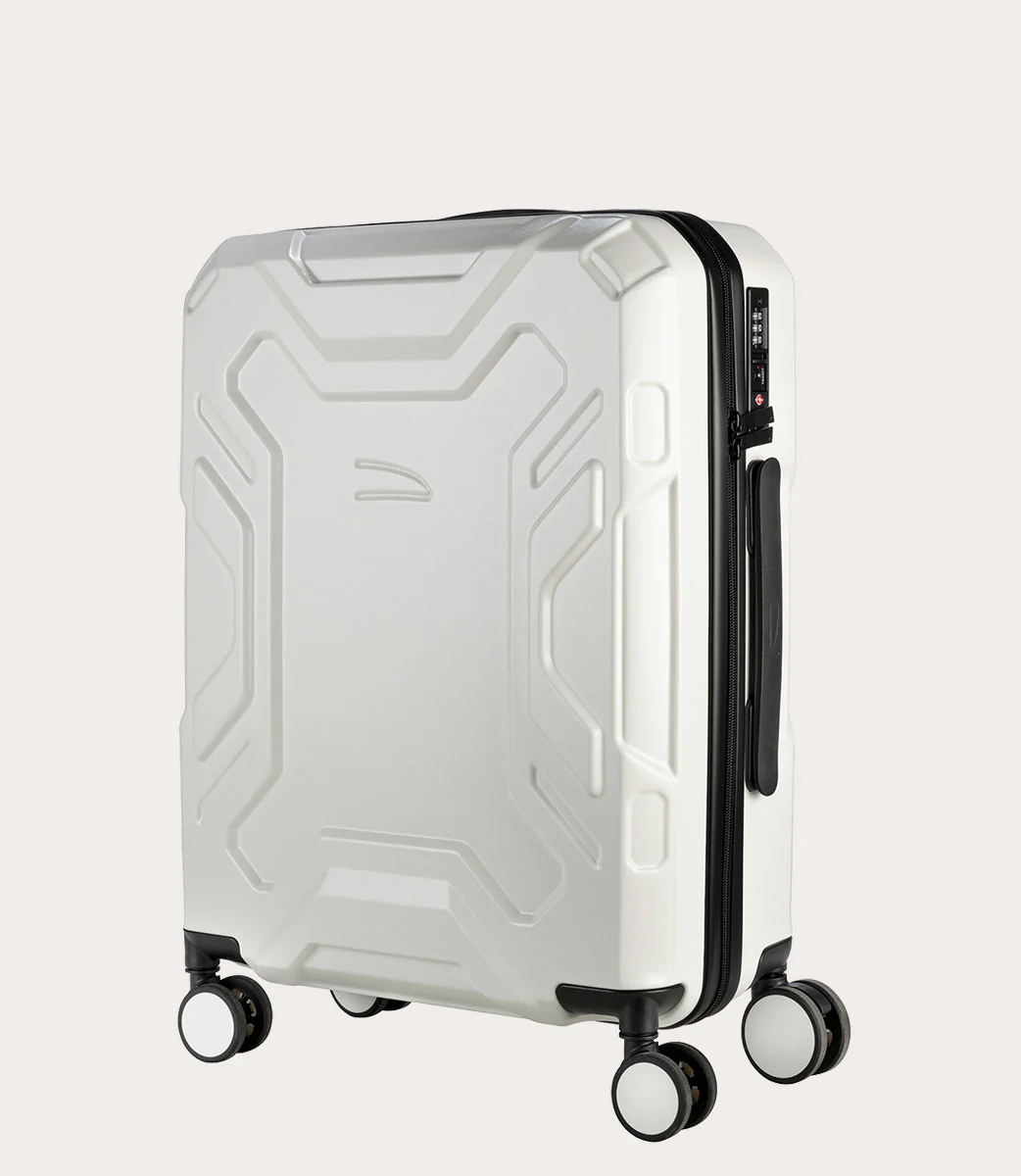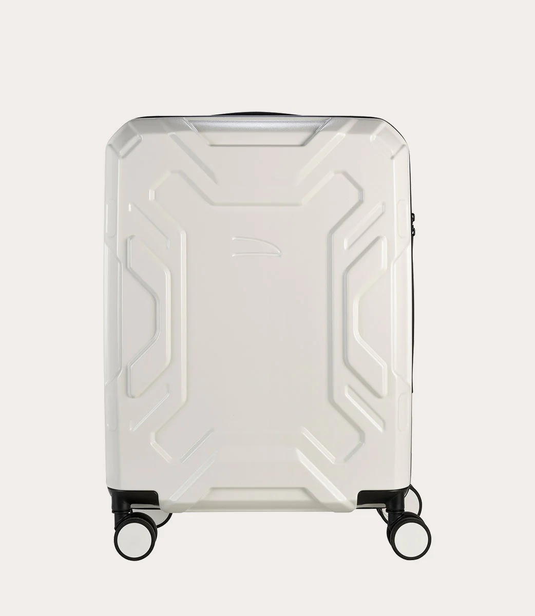 Trolley da cabina a quattro ruote dal design industriale, caratterizzato da due scocche in policarbonato leggero e resistente. L’ampio spazio interno, ha un separatore in tessuto con cerniera, dotato di comode tasche, e una doppia cinghia per fissare gli indumenti. Chiusura TSA.