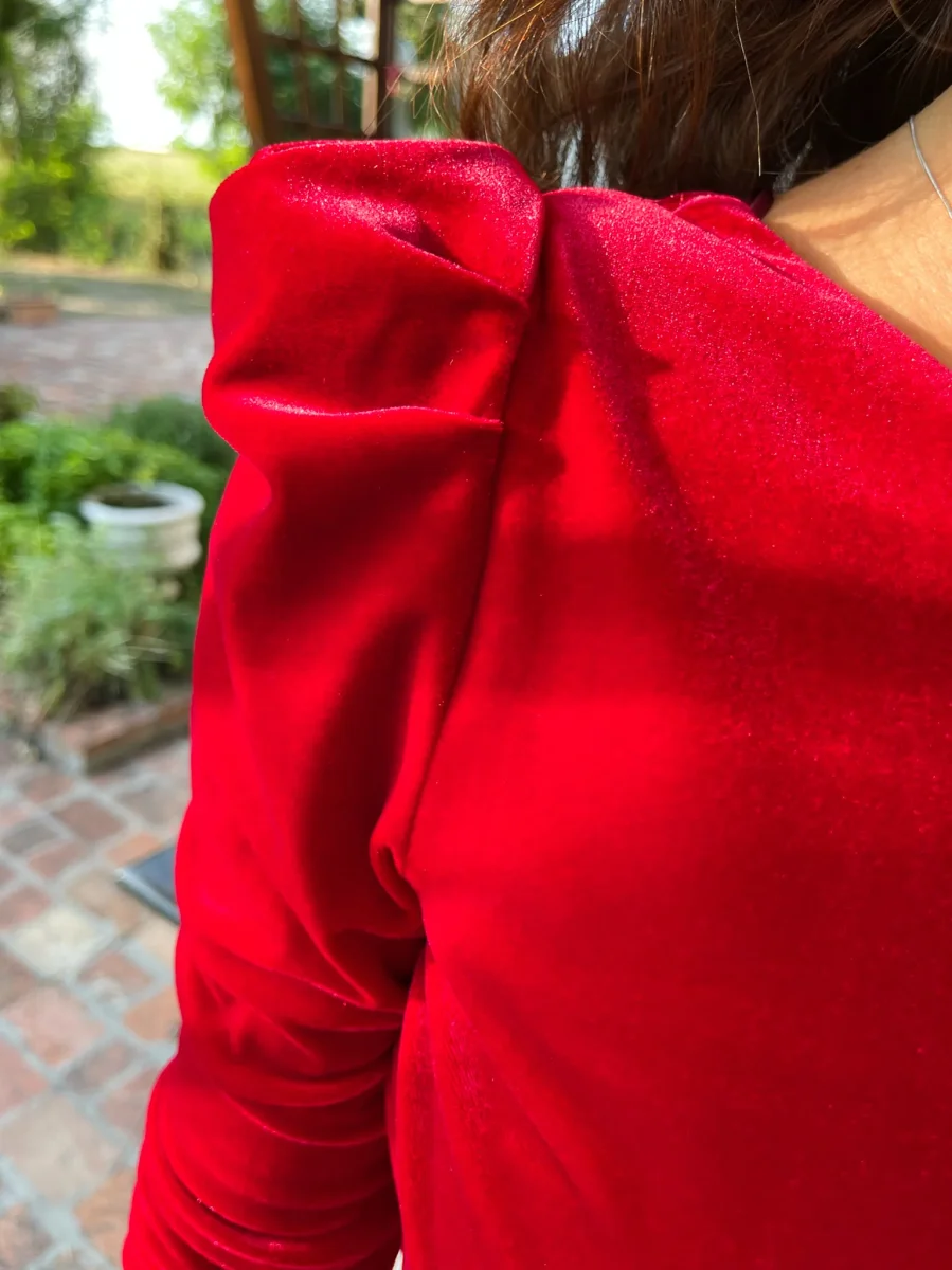Tessuto effetto velluto, spallina imbottita, una sensazione al tatto indescrivibile e tanta, tanta tanta eleganza.