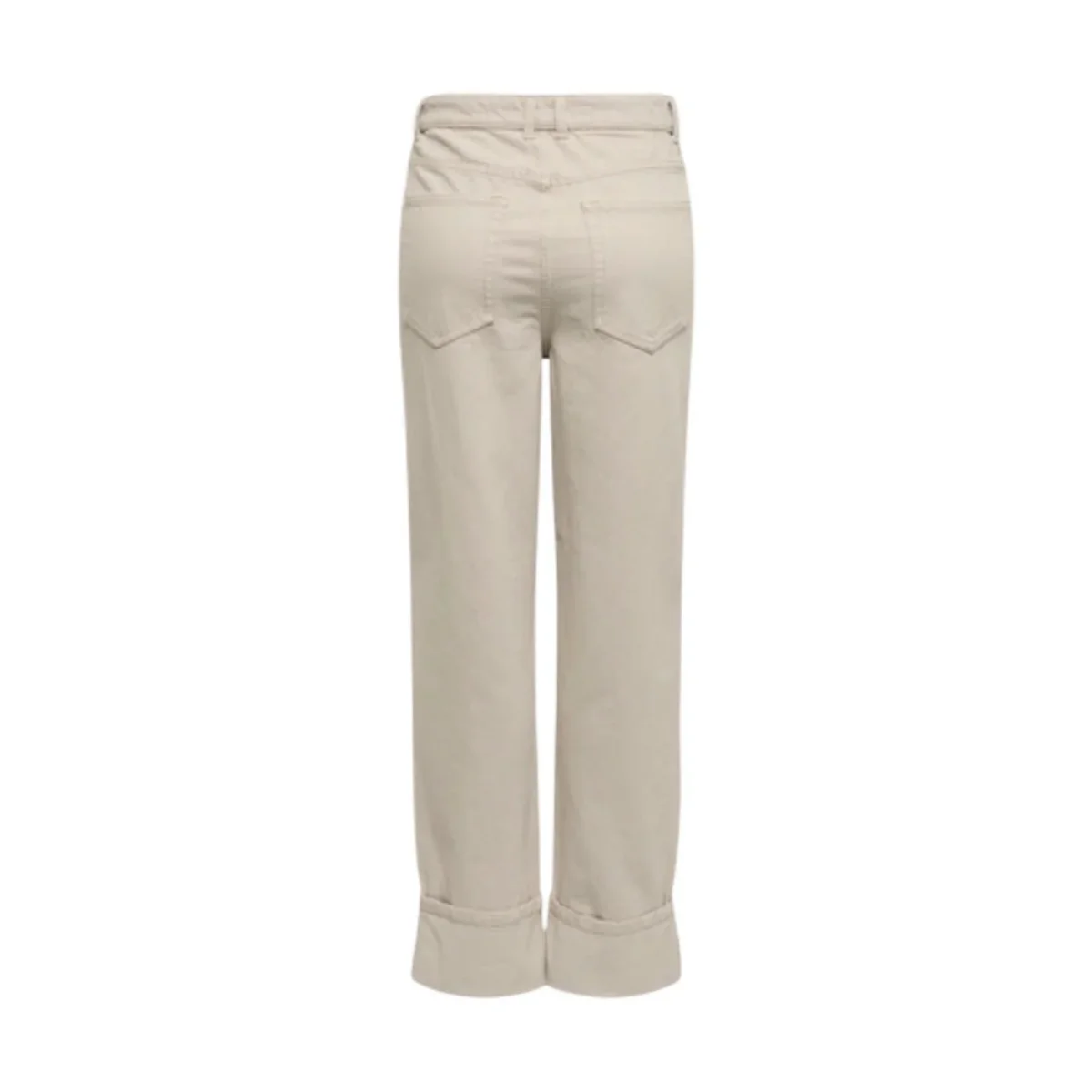 ๐ค Jeans Donna Only Mom ONLEVERLY HW SLIM ST FOLD-UP CC PNT Beige Con Zip E Bottone Tasche Anteriori E Posteriori 100% Cotone Primavera/Estate – Stile Casual Moderno
