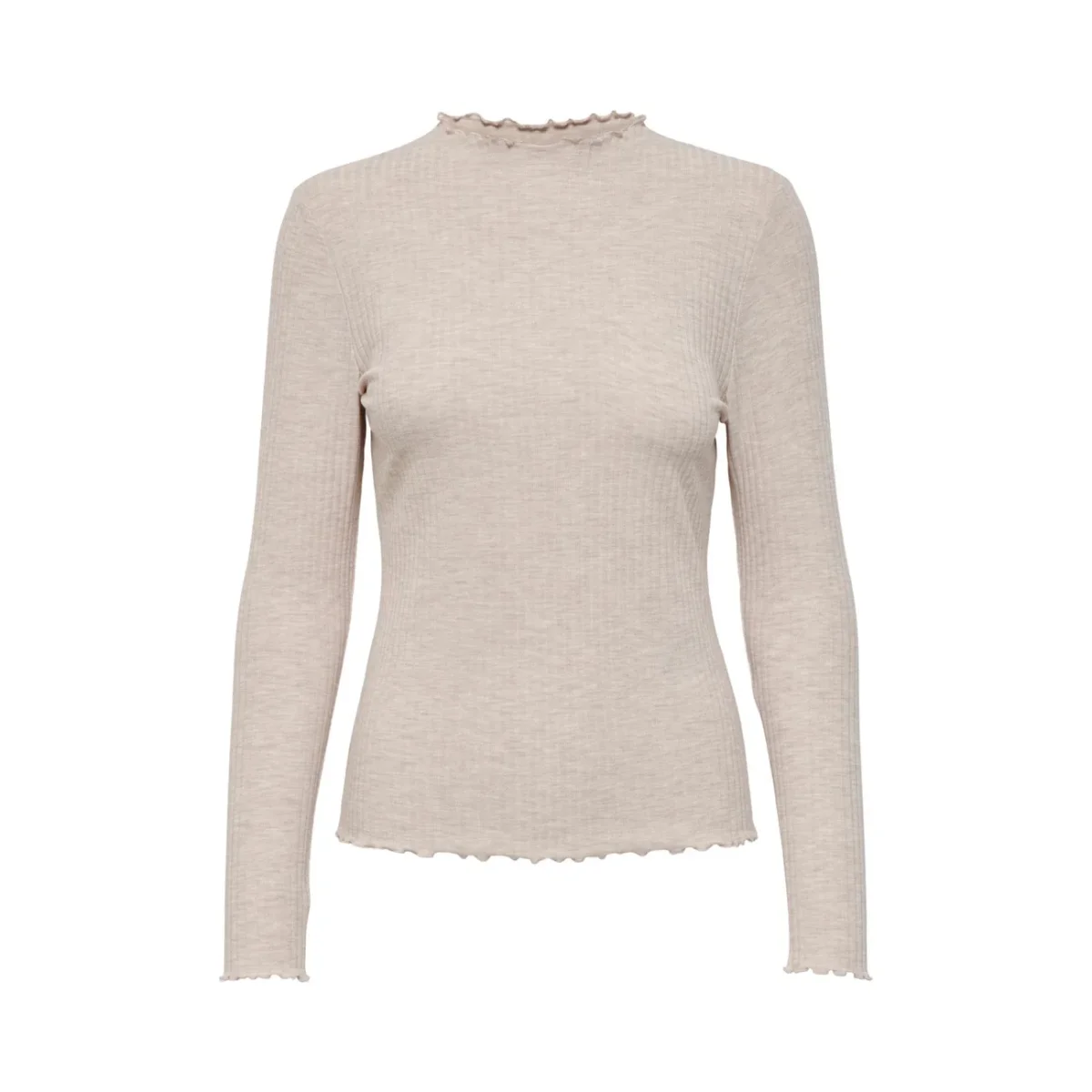 ๐ค Maglia Donna Only Beige in 65% Poliestere 30% Viscosa 5% Elastan a Manica Lunga con Scollo Tondo – Stile Casual Moderno